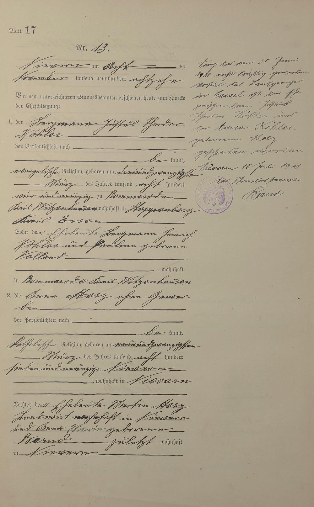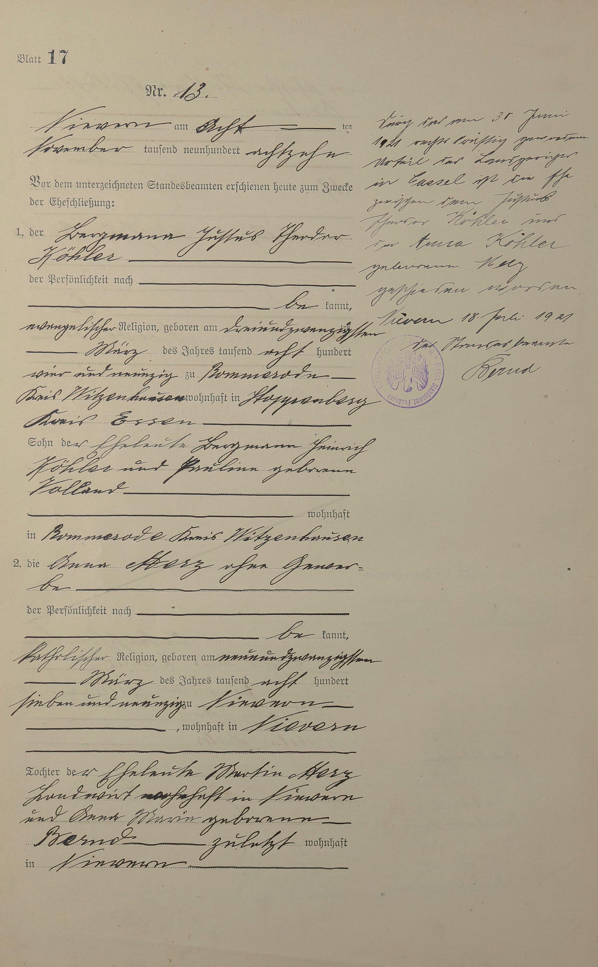 Heiratsregister 1918