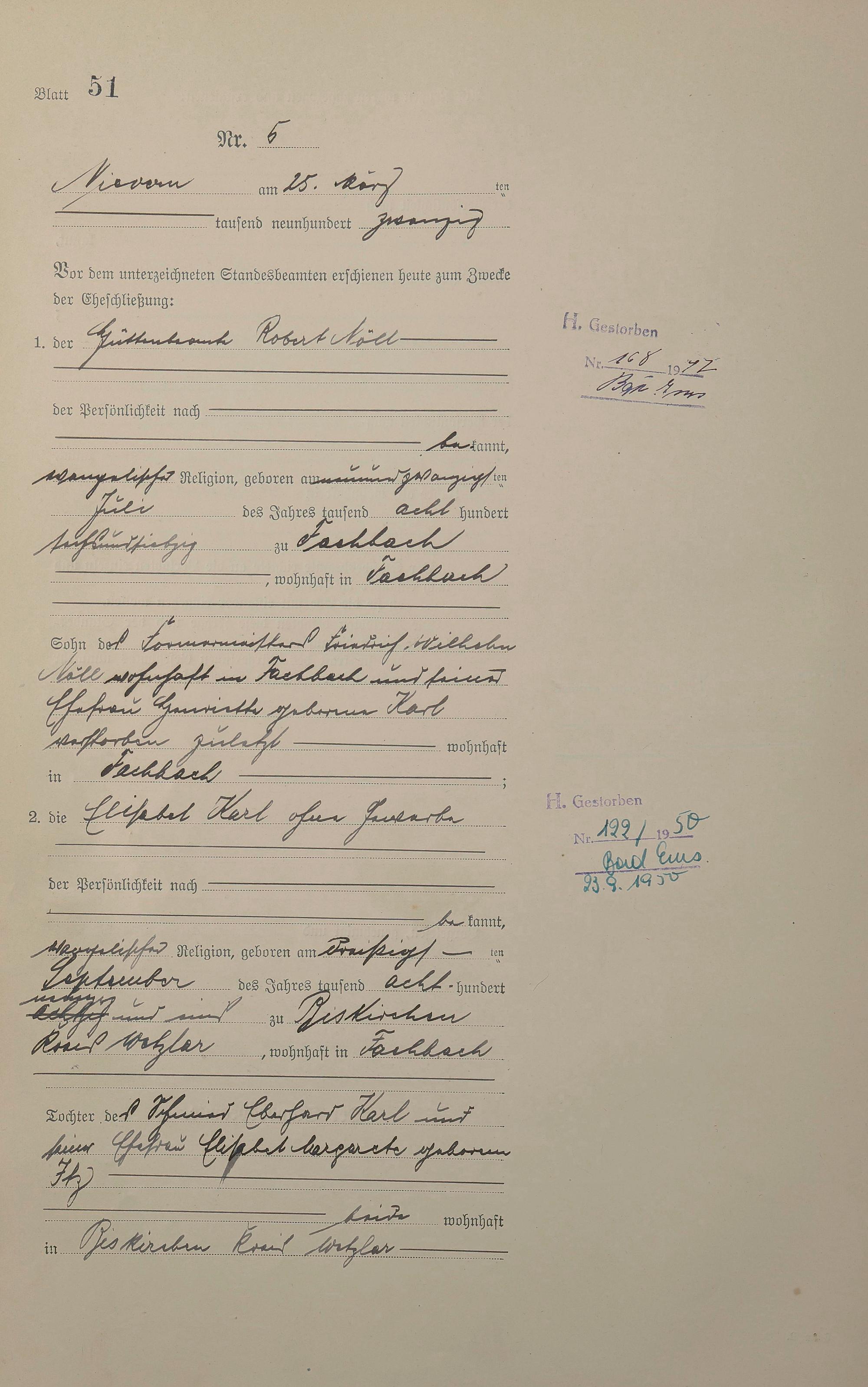 Heiratsregister 1920