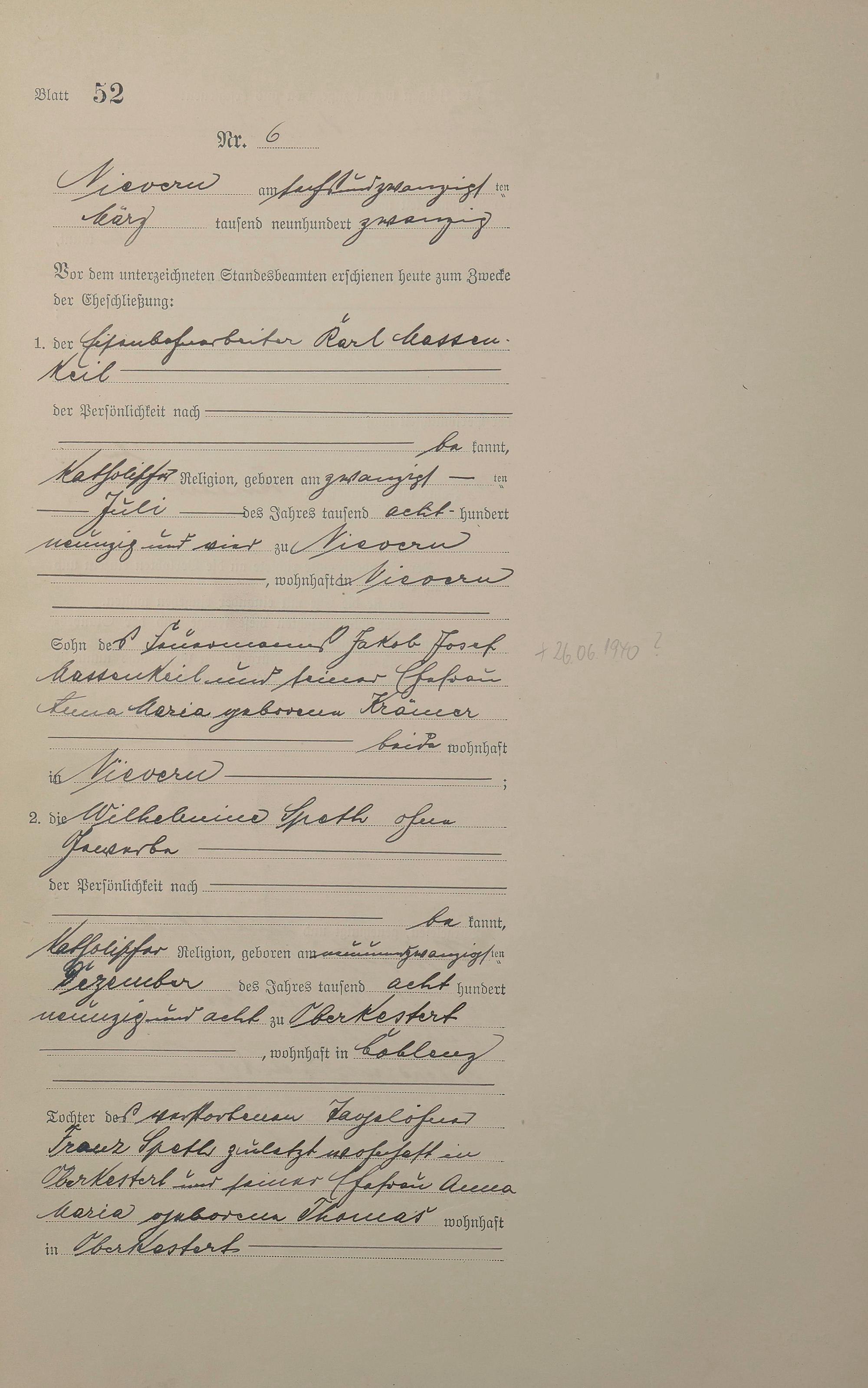 Heiratsregister 1920