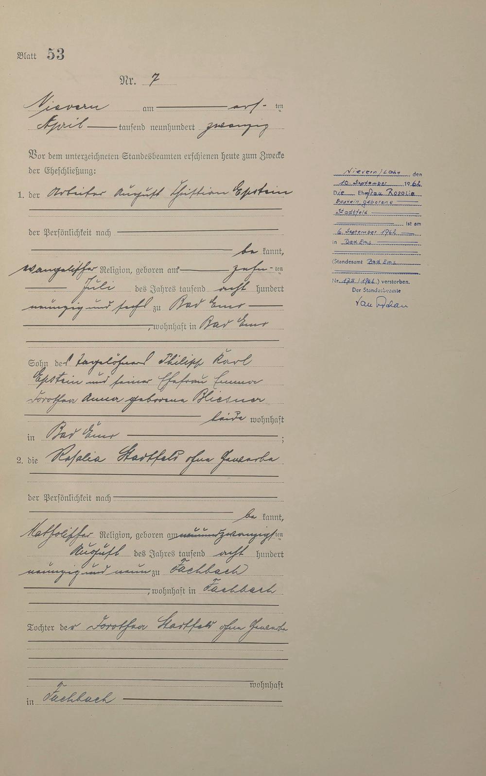 Heiratsregister 1920