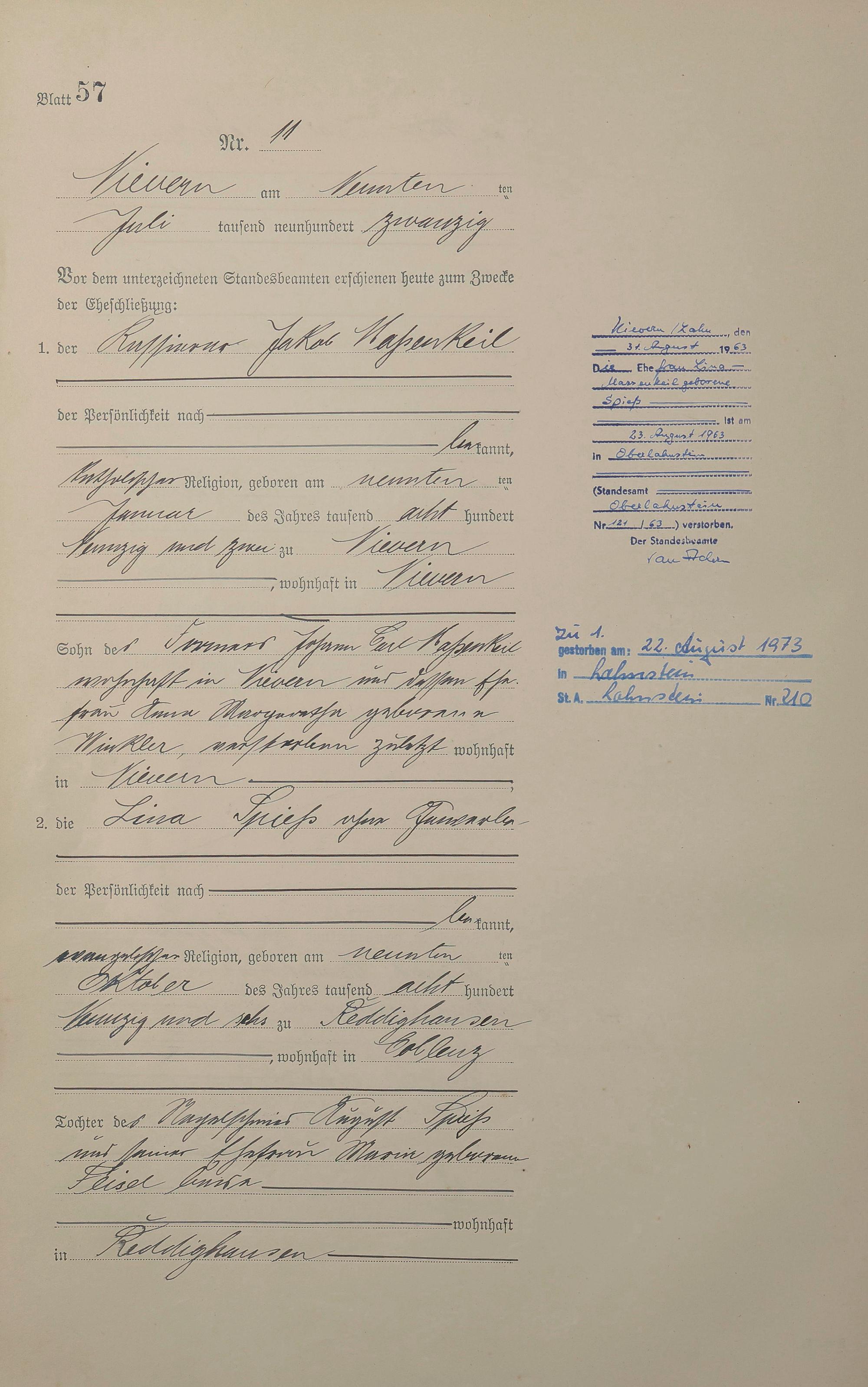 Heiratsregister 1920