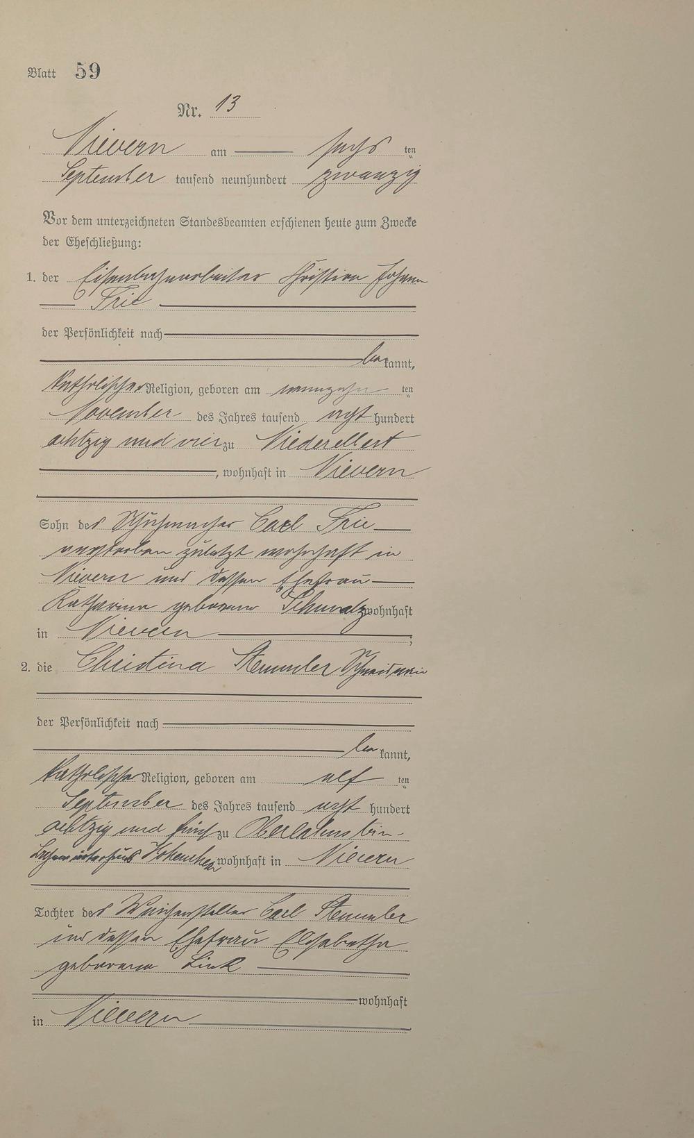 Heiratsregister 1920