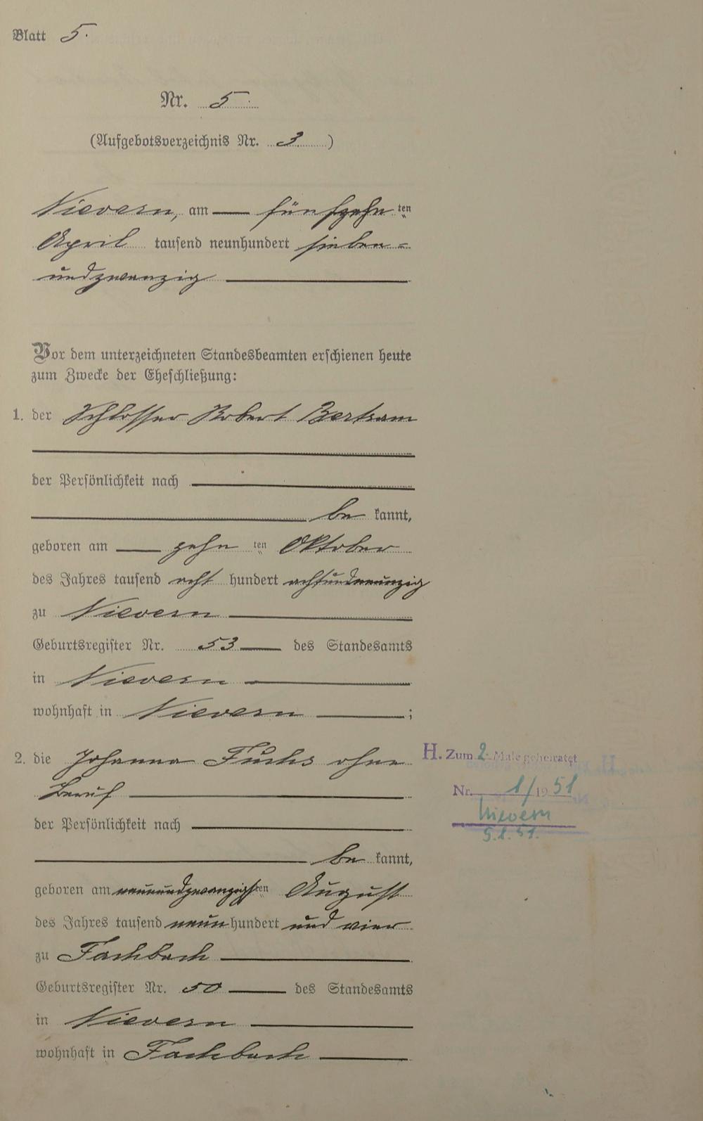 Heiratsregister 1927