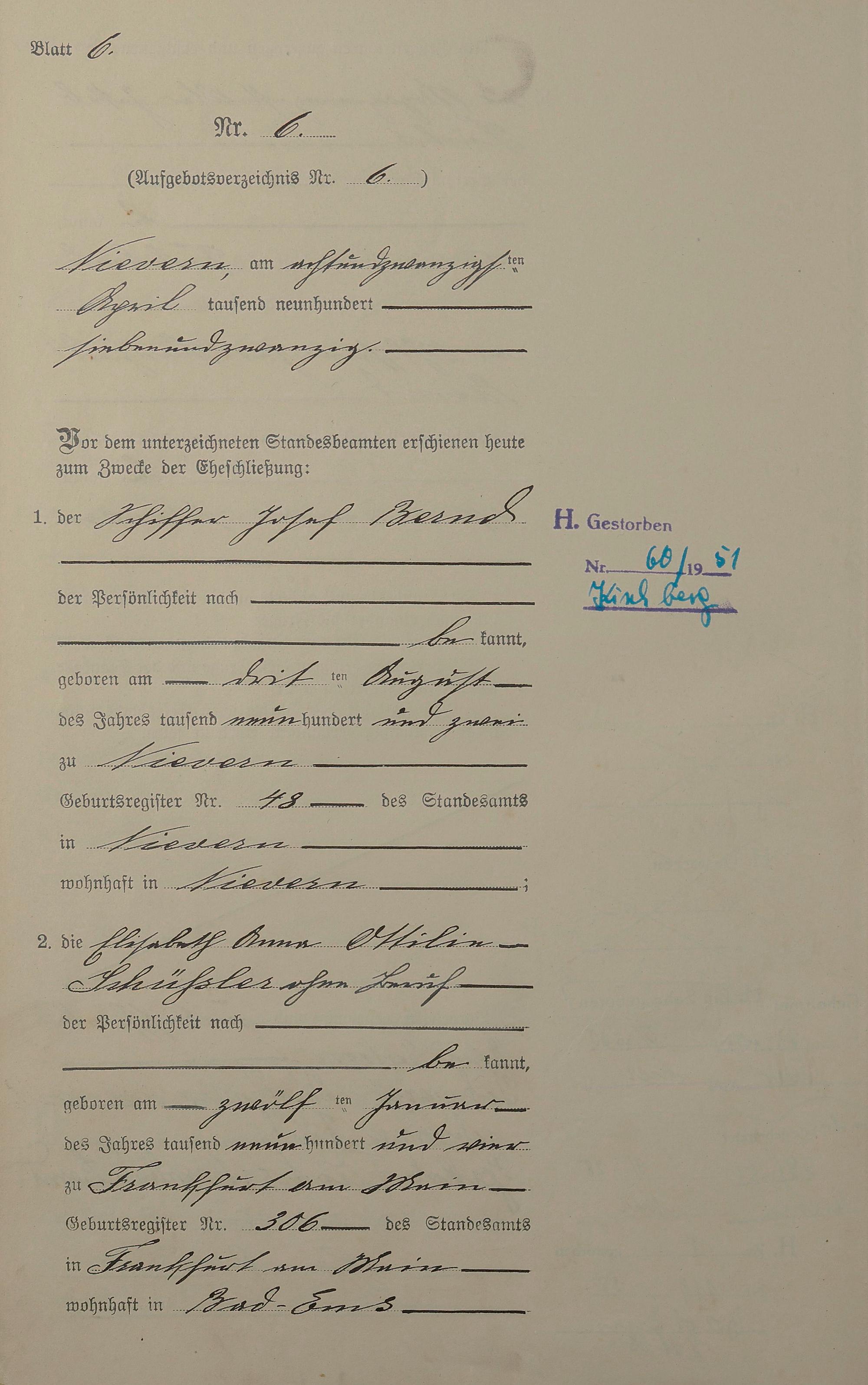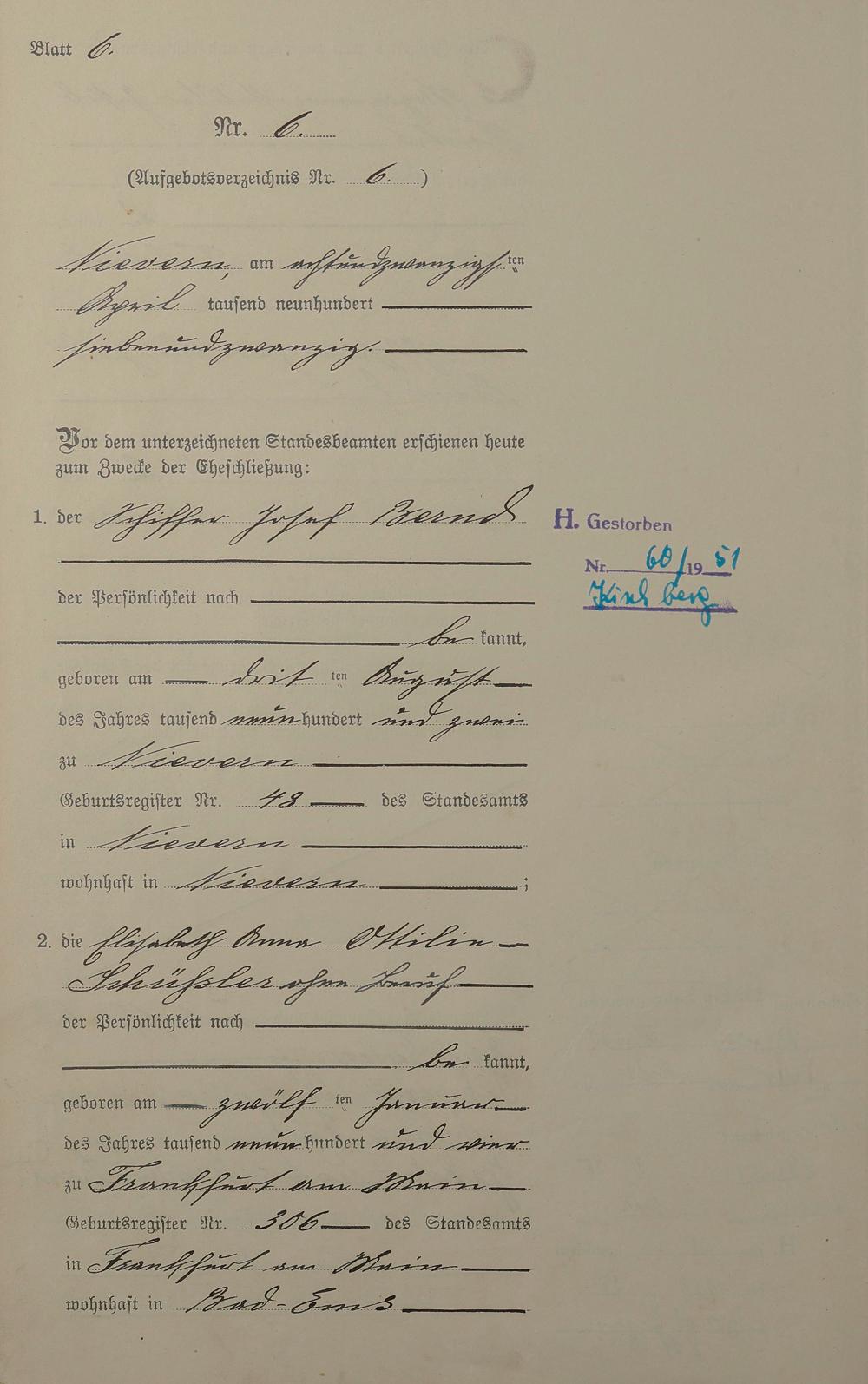Heiratsregister 1927