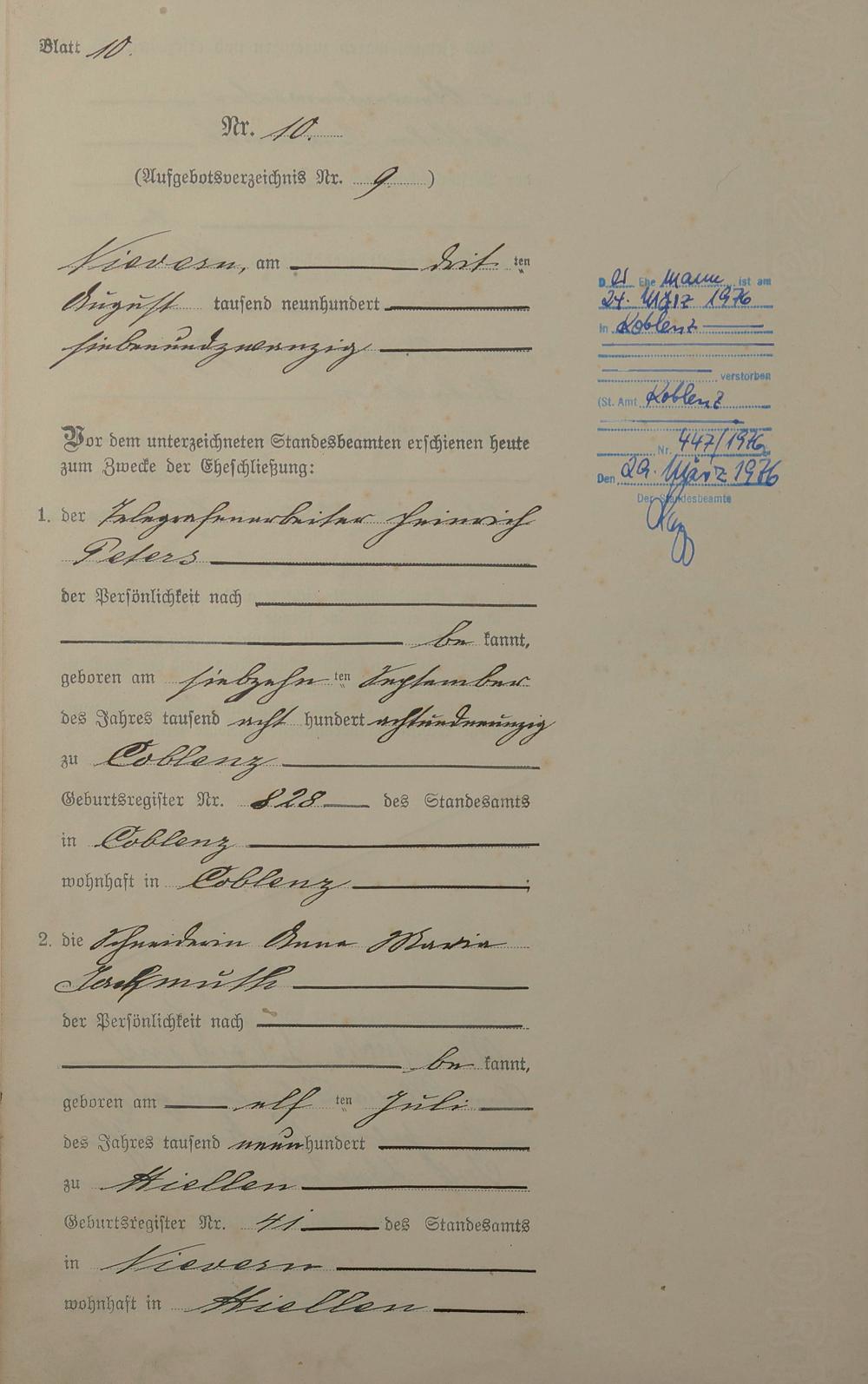 Heiratsregister 1927