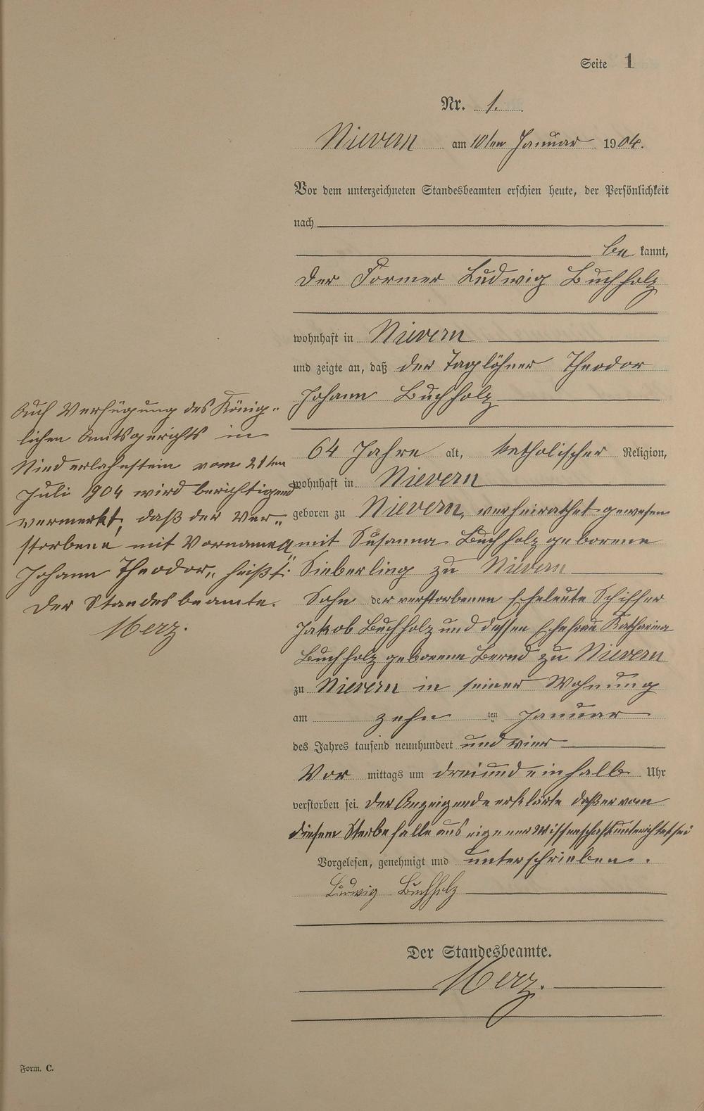 Sterberegister 1904
