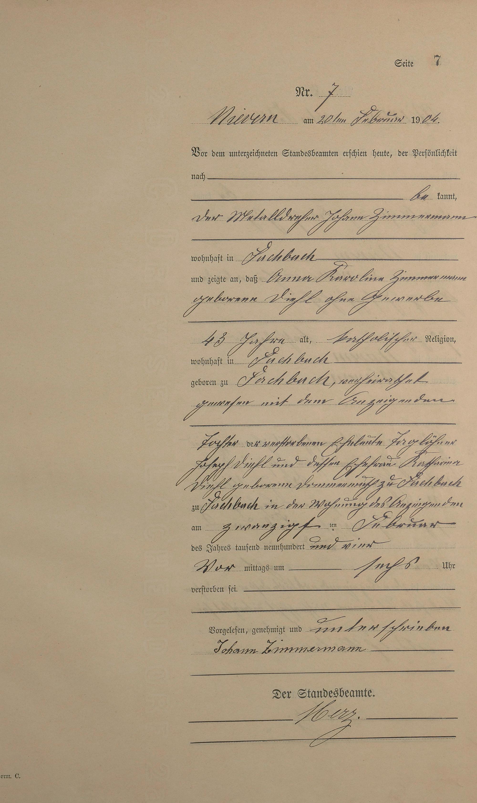 Sterberegister 1904