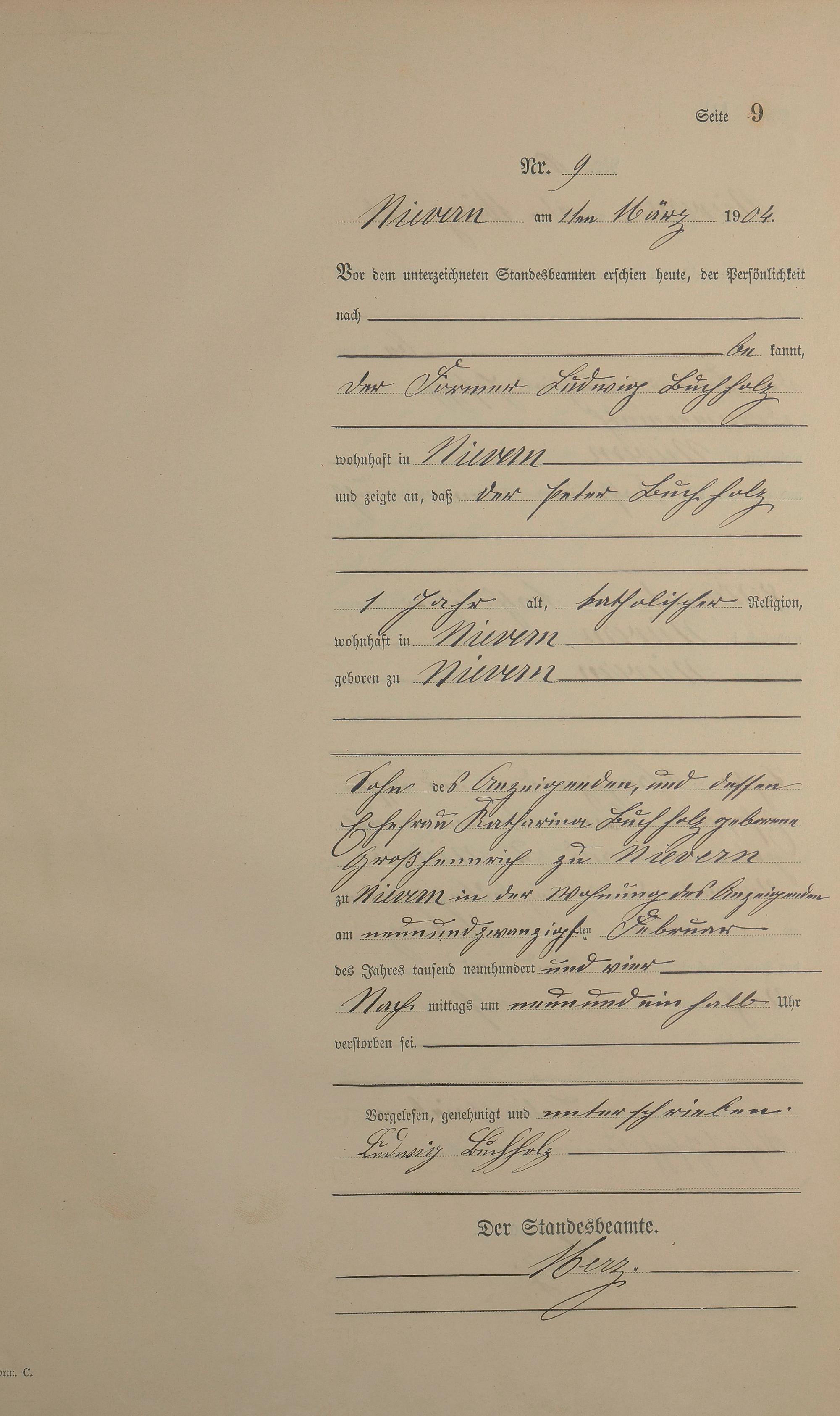 Sterberegister 1904