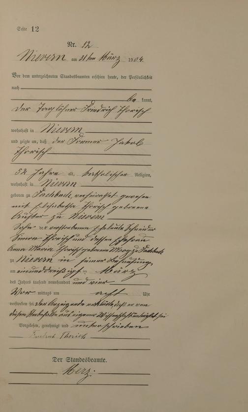 Sterberegister 1904