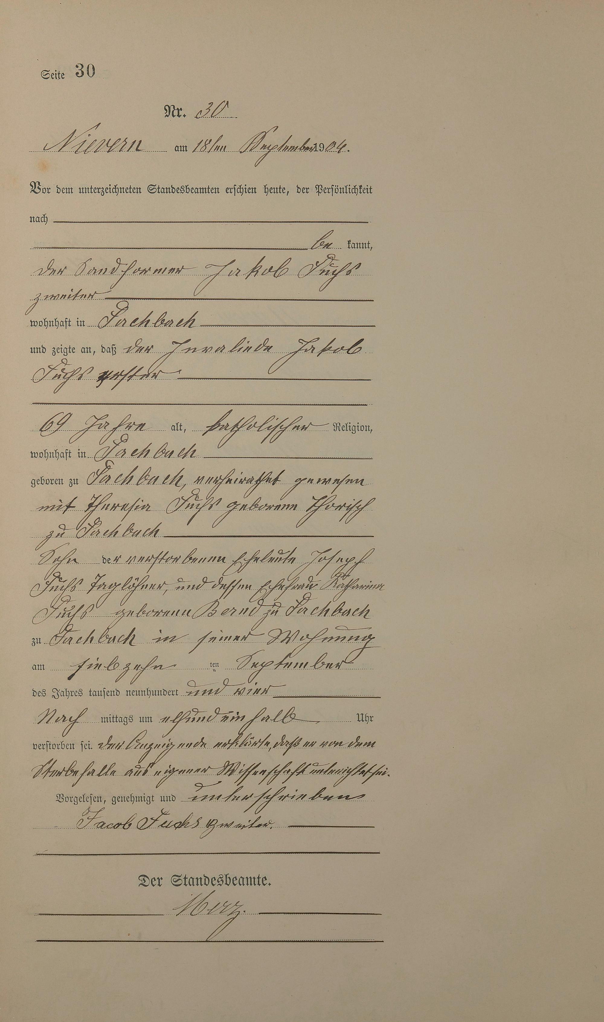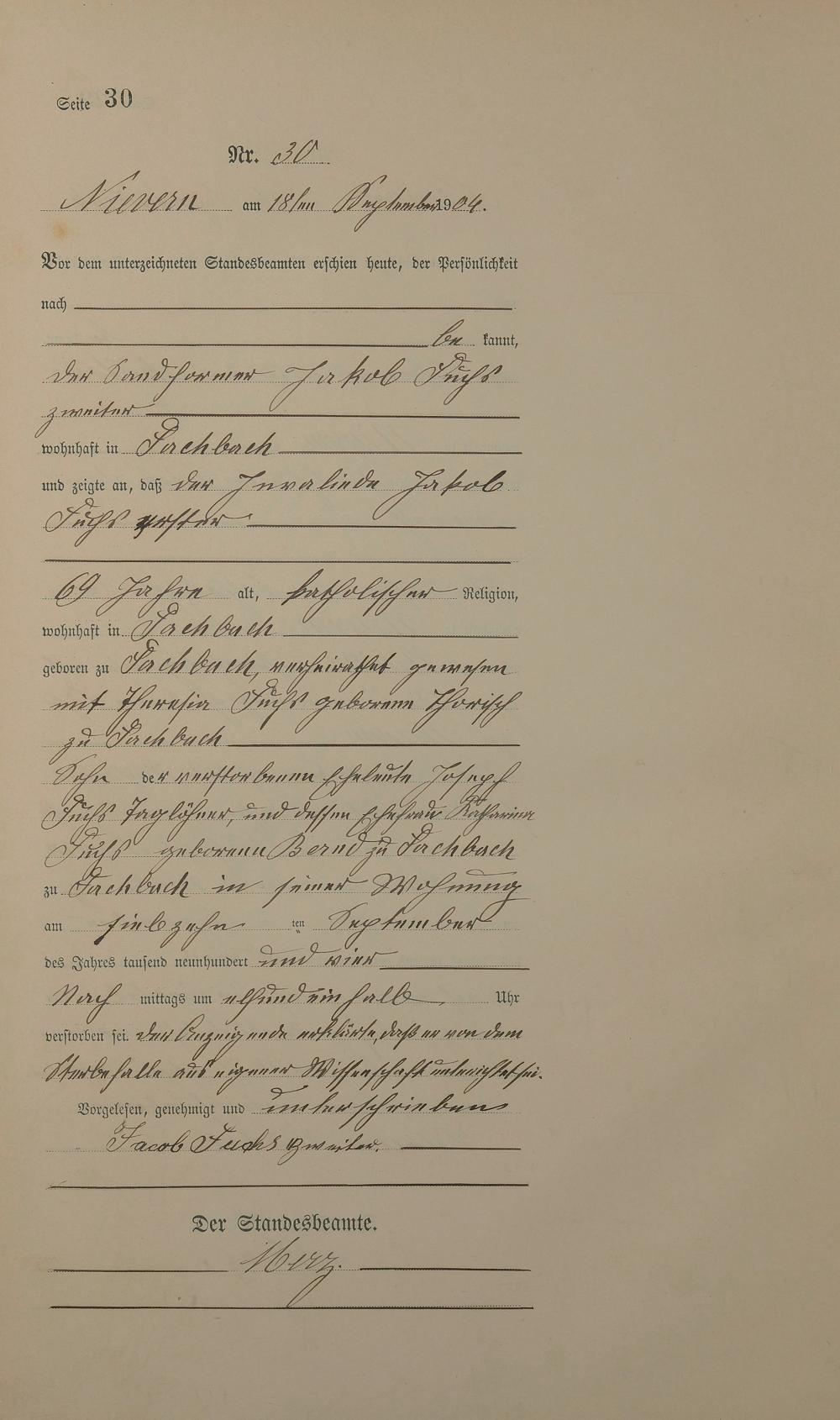 Sterberegister 1904