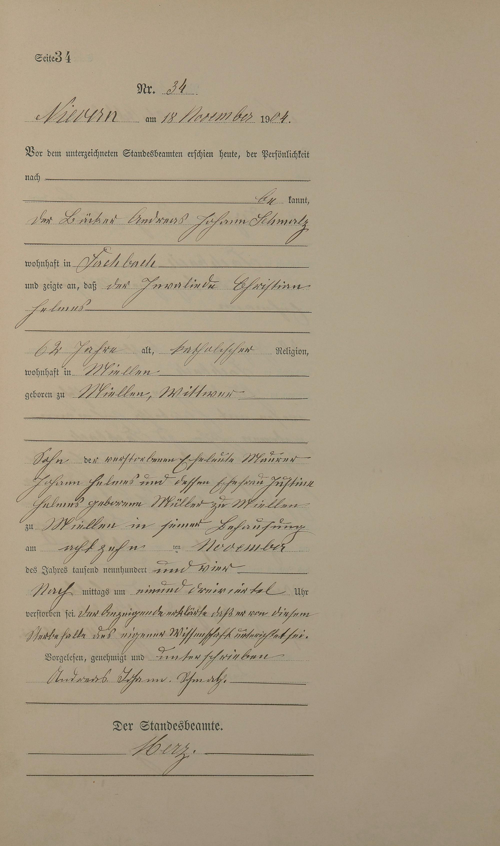 Sterberegister 1904