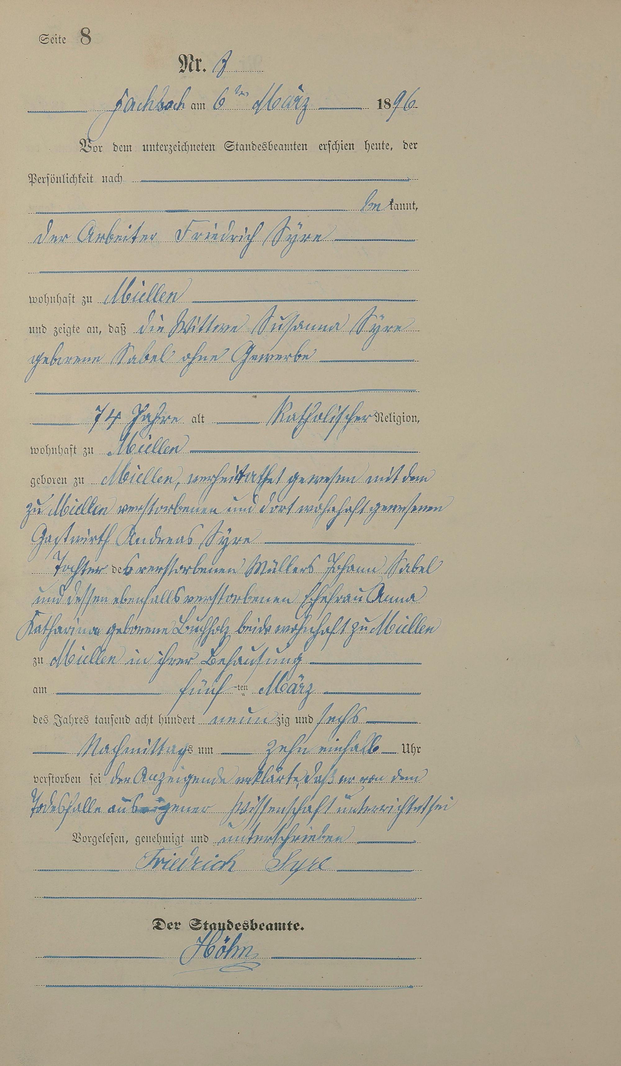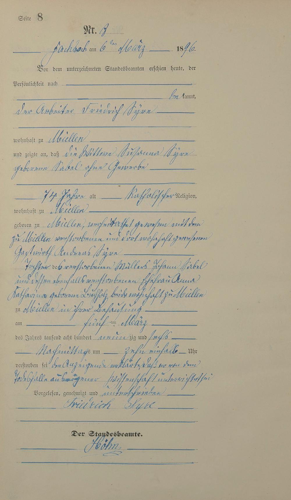 287/5: Sterberegister 1896