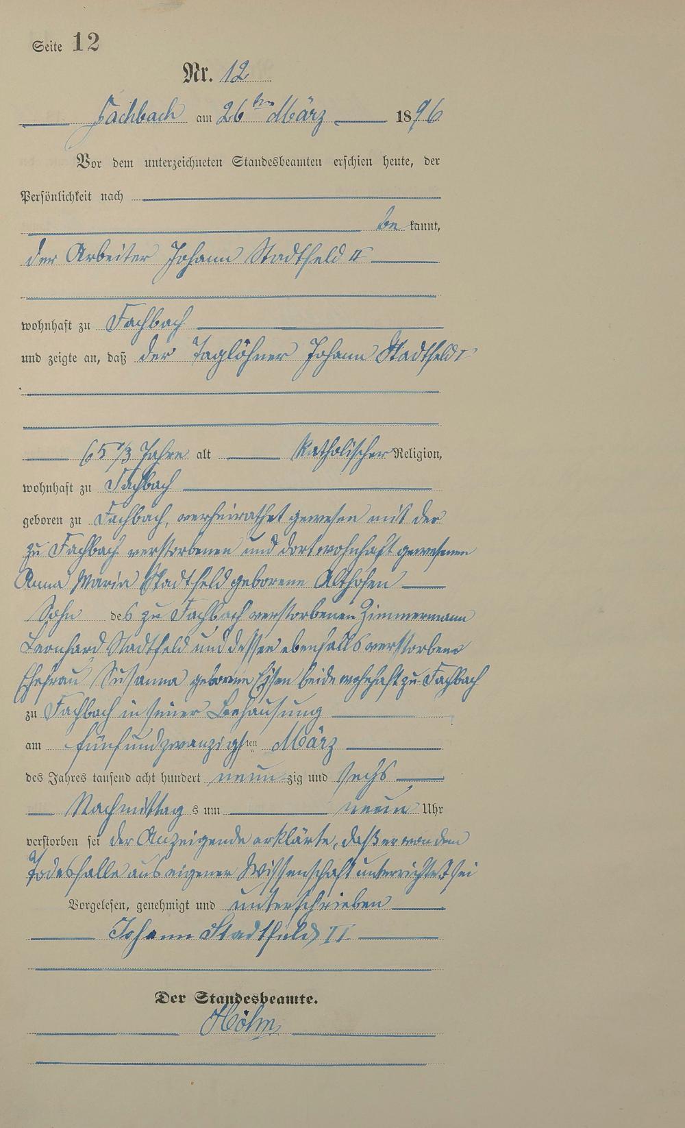 Sterberegister 1896