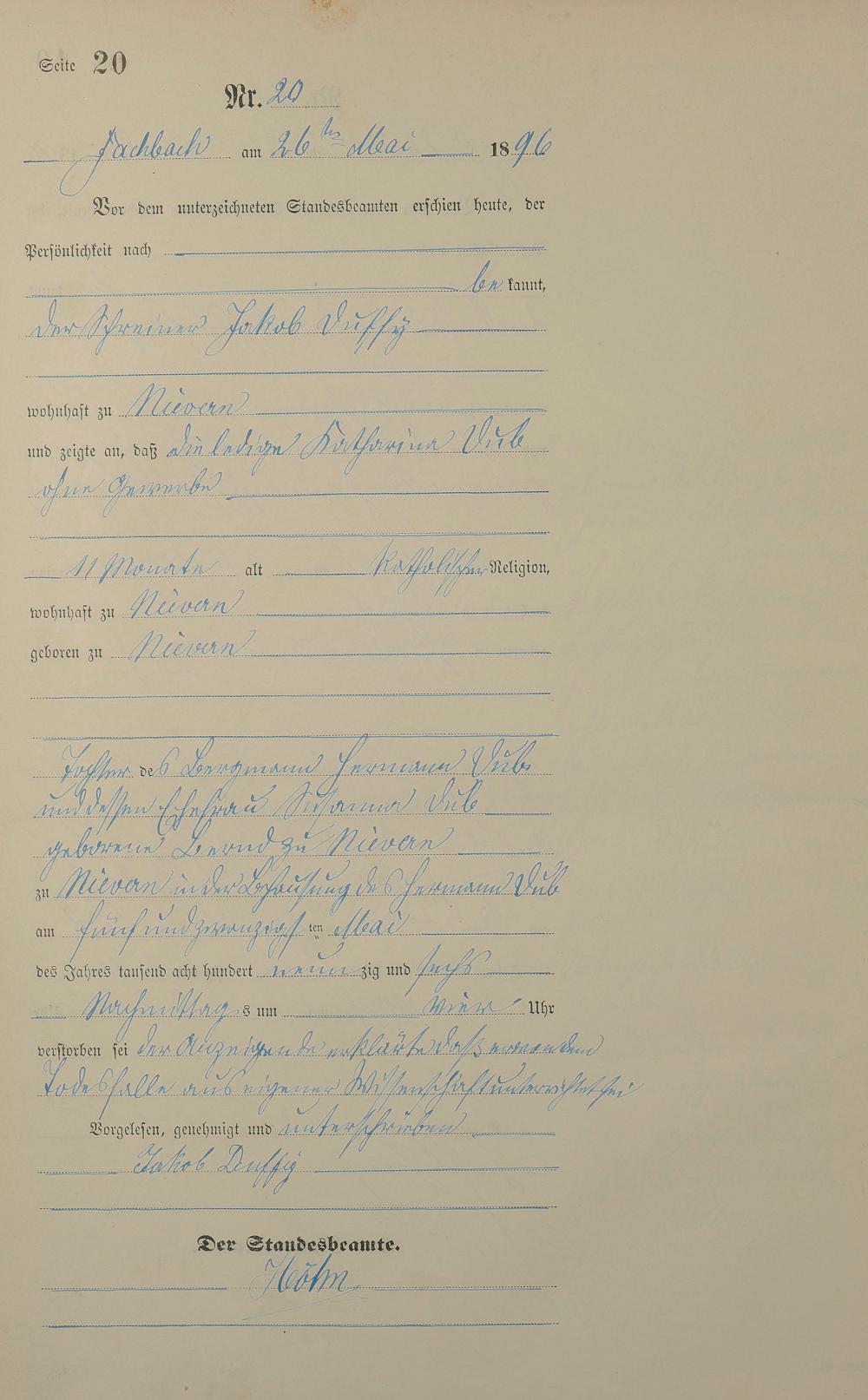 Sterberegister 1896