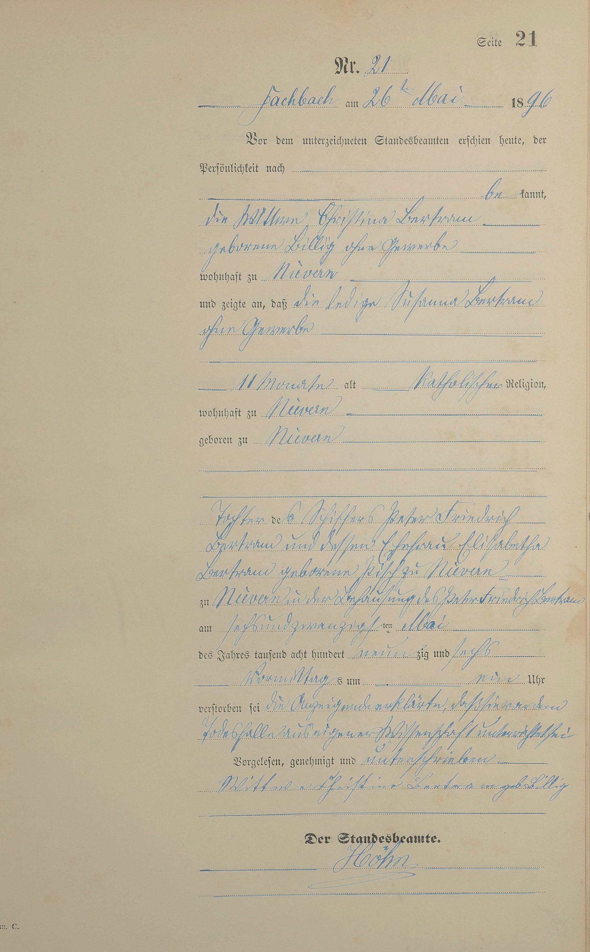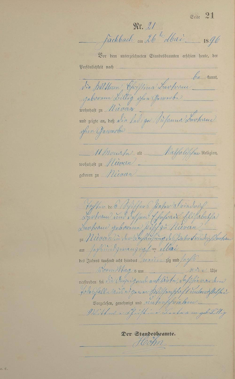 Sterberegister 1896