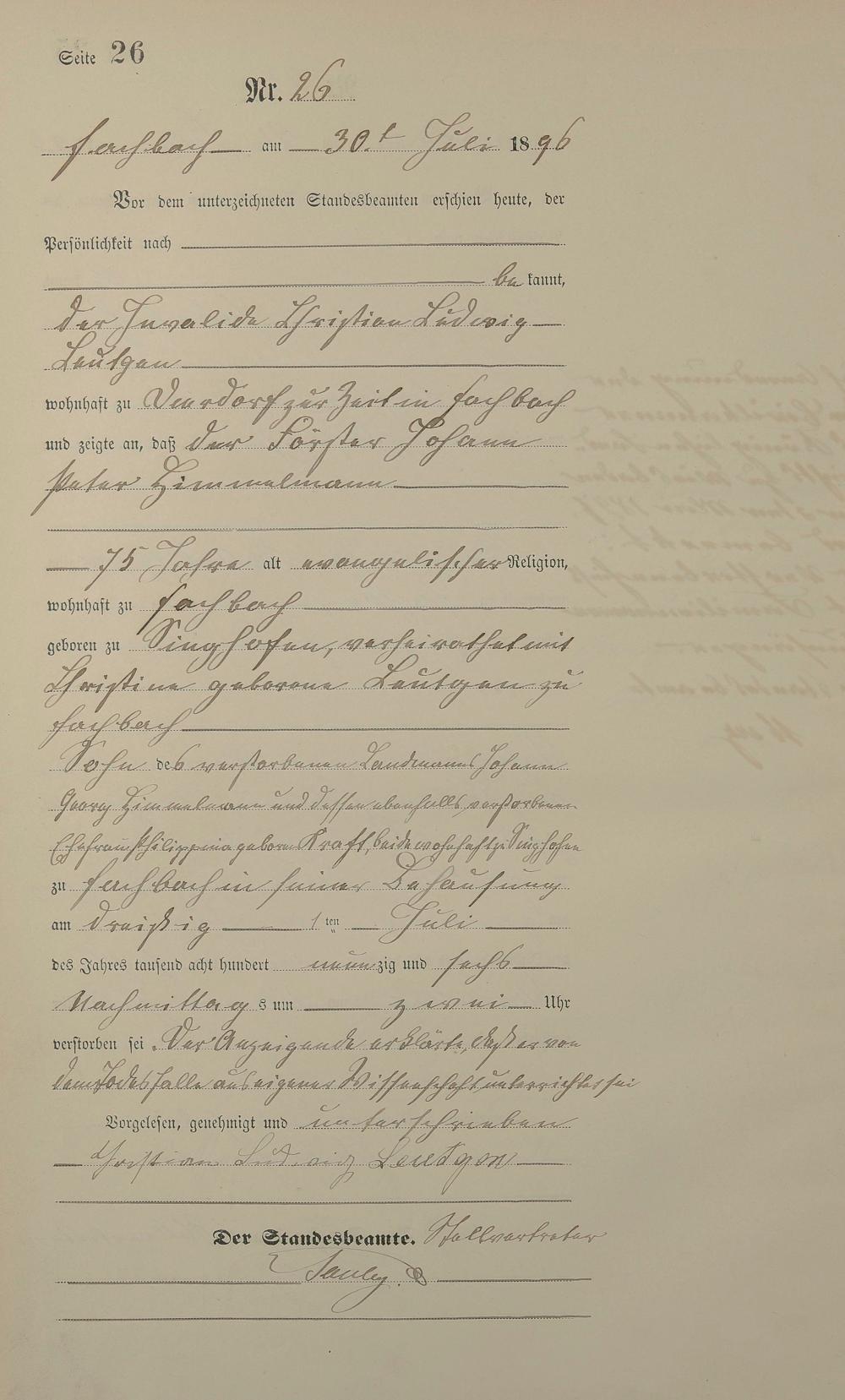 Sterberegister 1896