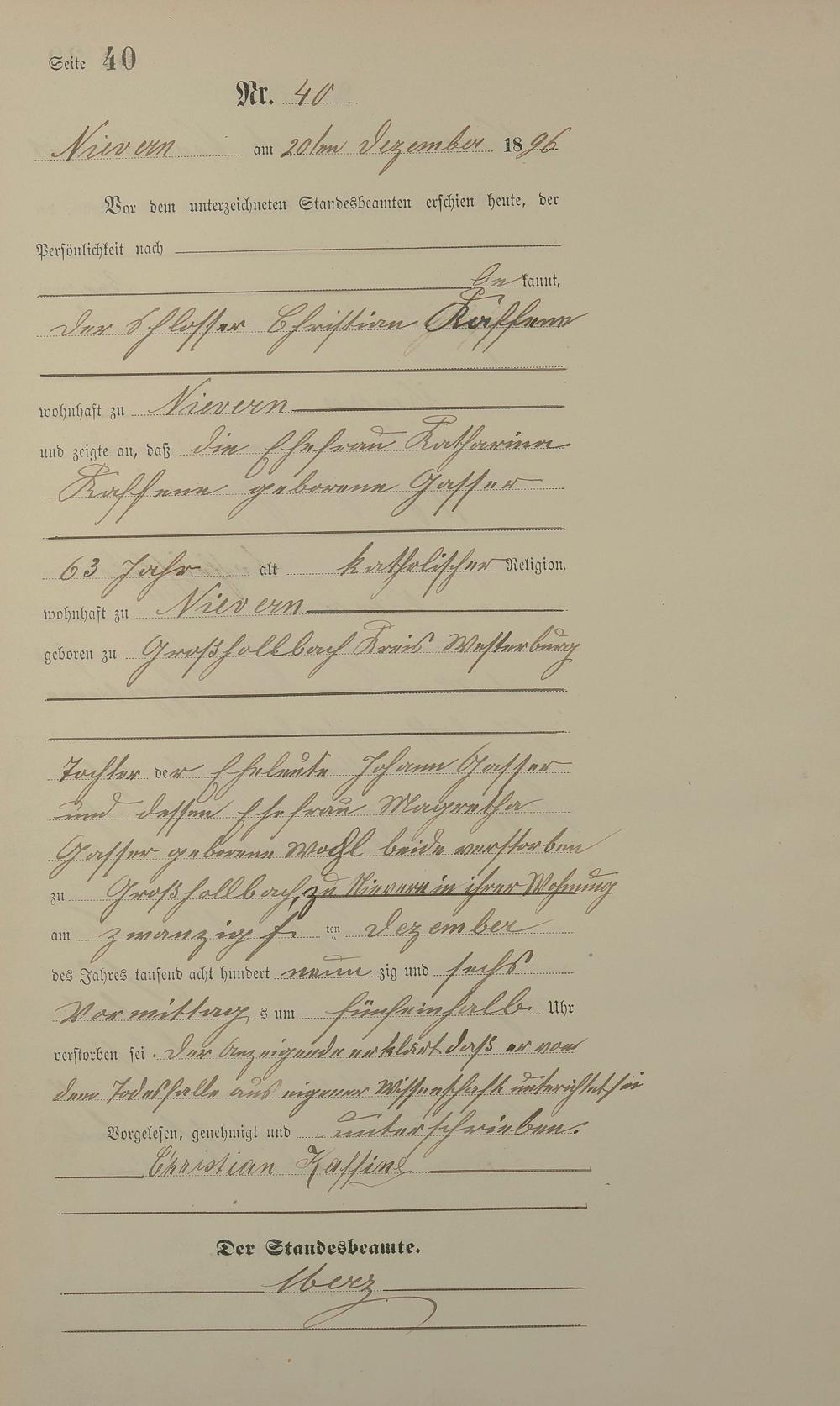 Sterberegister 1896