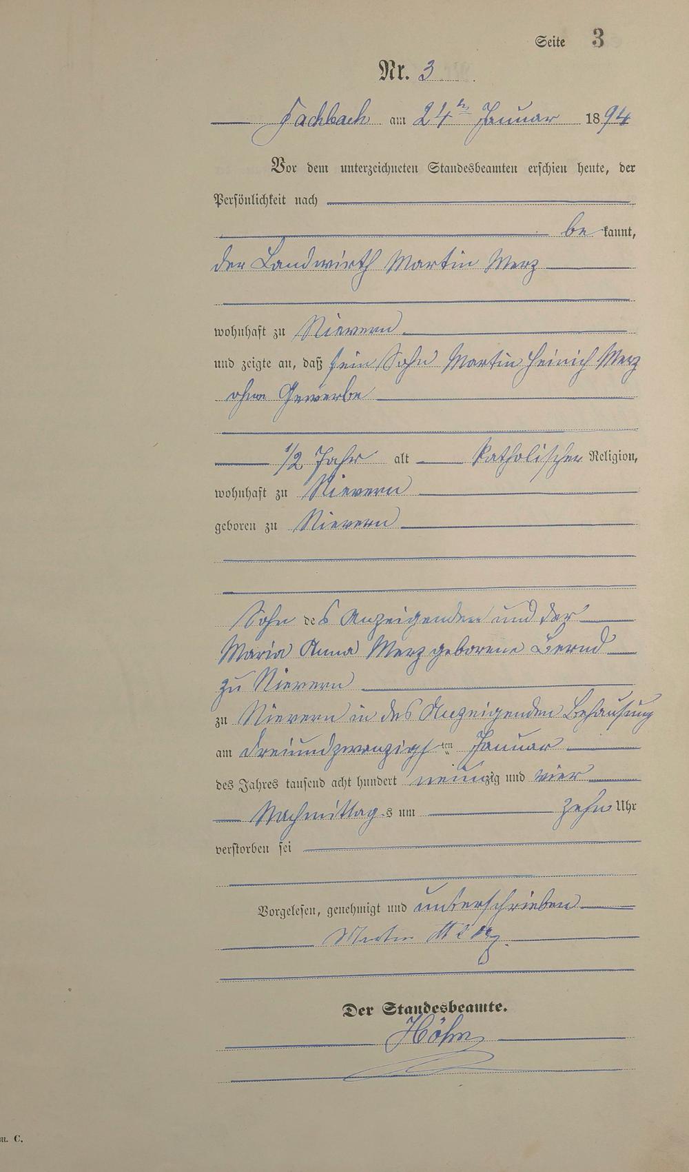 Sterberegister 1894
