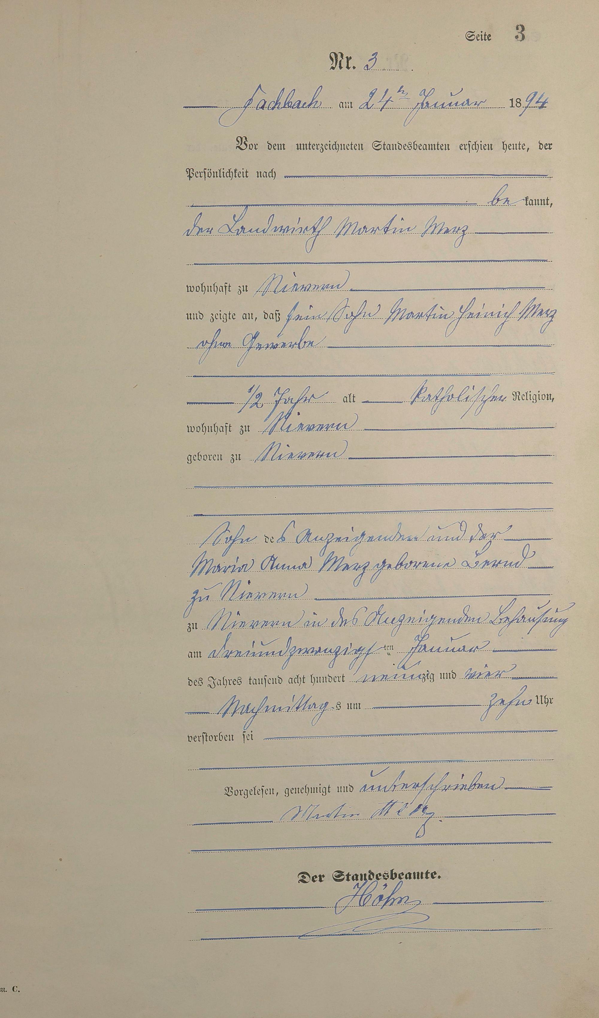 287/3: Sterberegister 1894