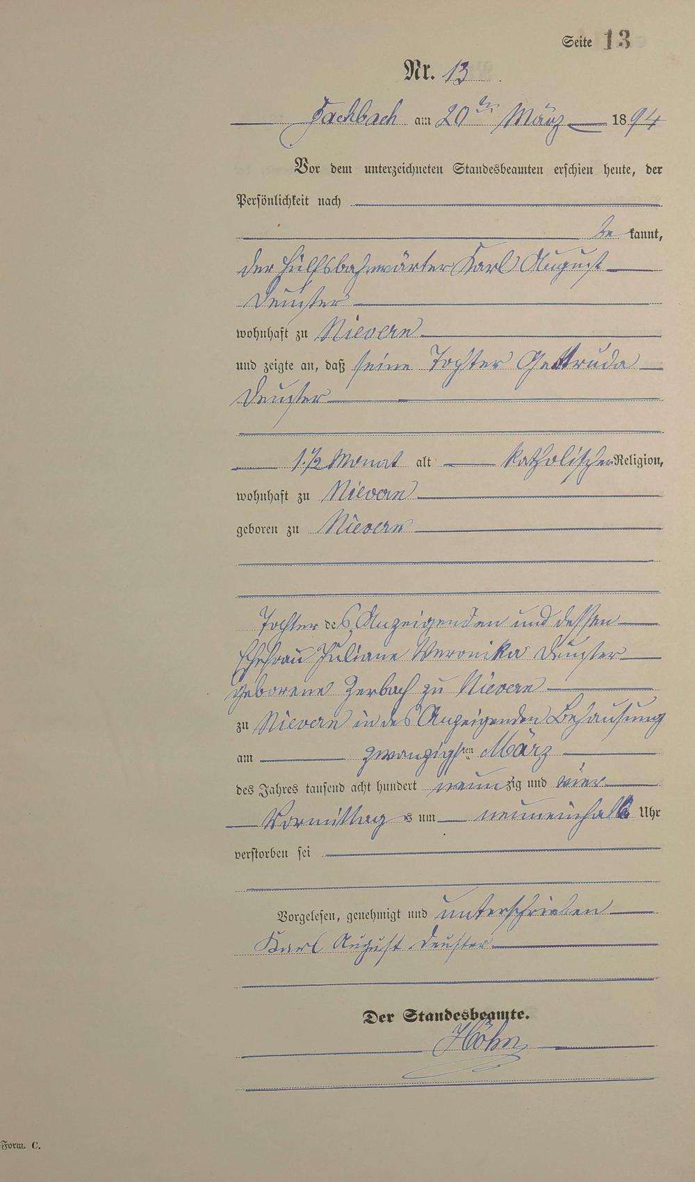 Sterberegister 1894