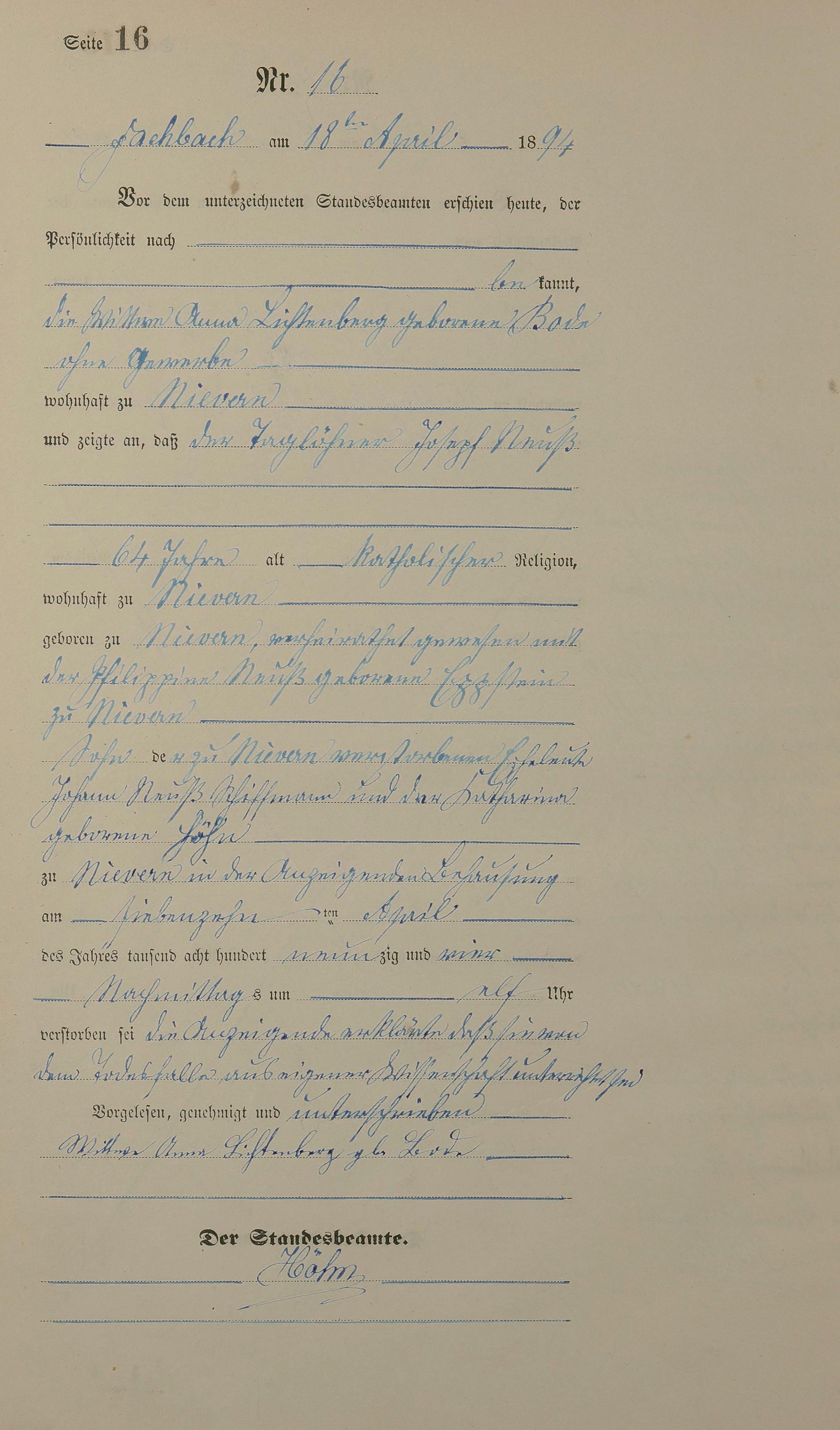 Sterberegister 1894