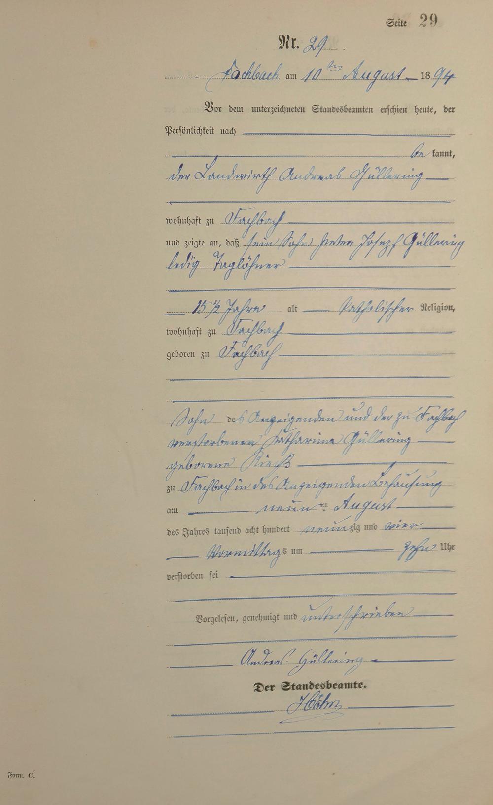 Sterberegister 1894