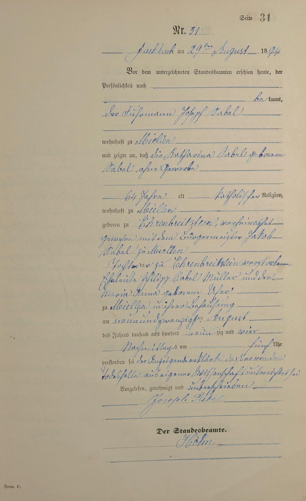 Sterberegister 1894