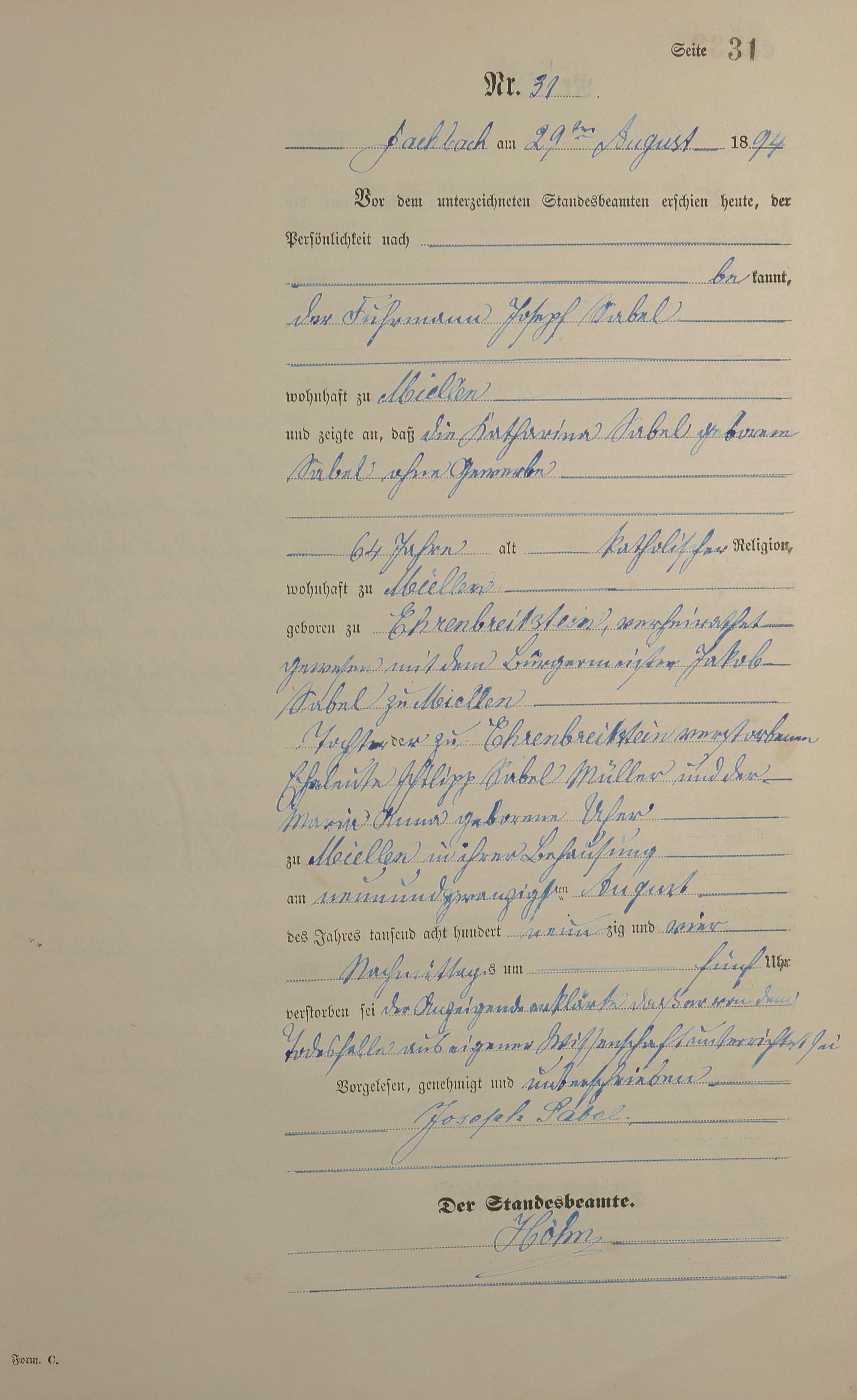 287/3: Sterberegister 1894