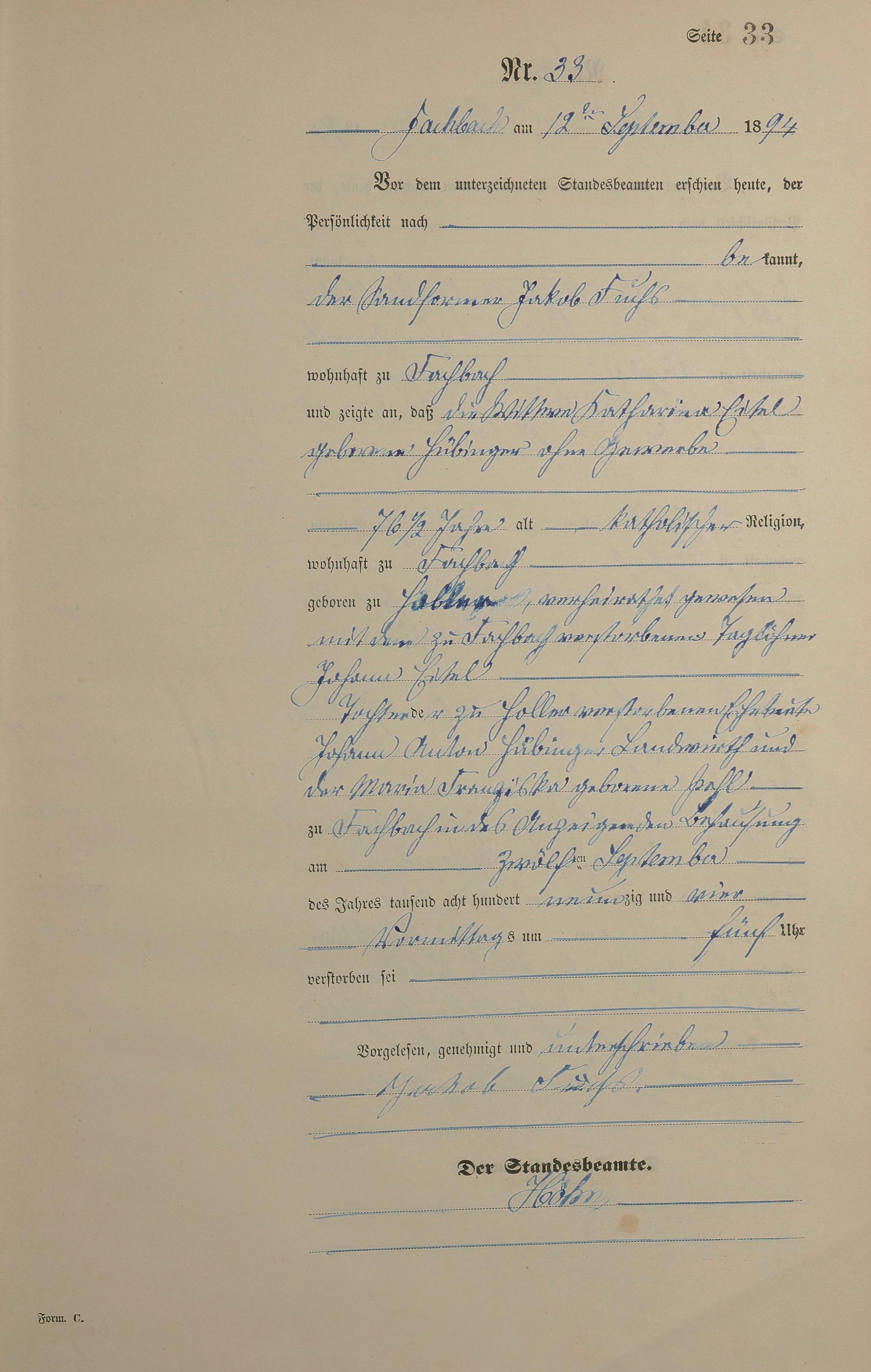 Sterberegister 1894
