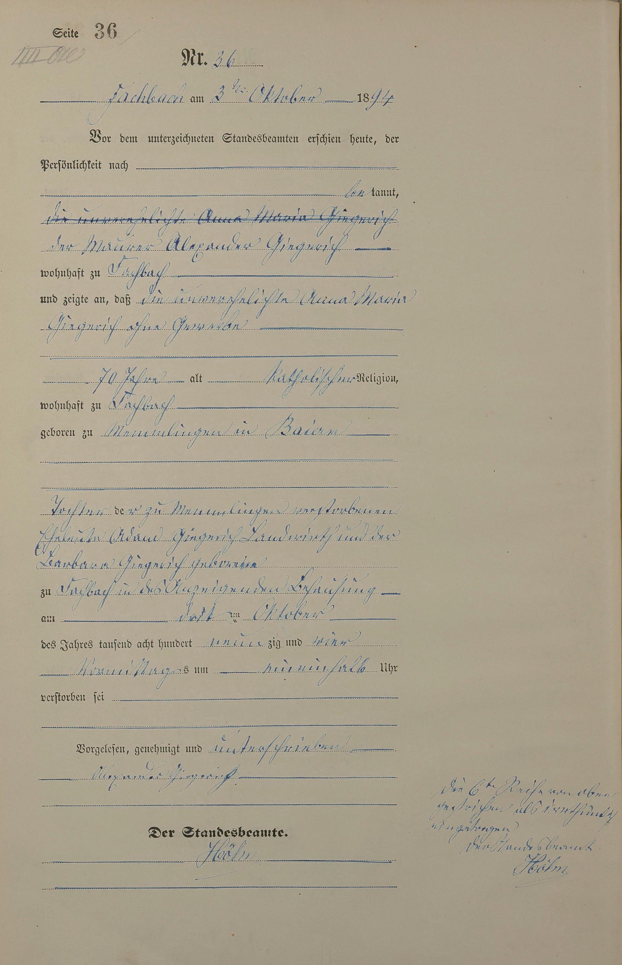 Sterberegister 1894