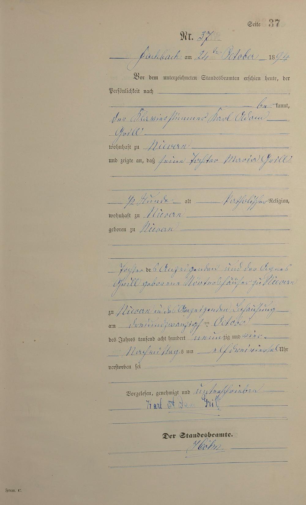 Sterberegister 1894