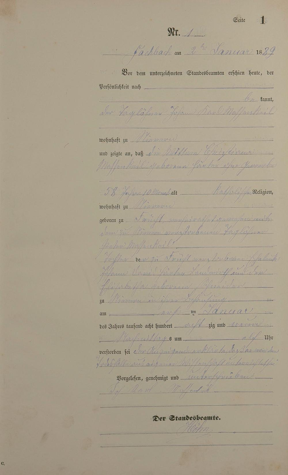 Sterberegister 1889