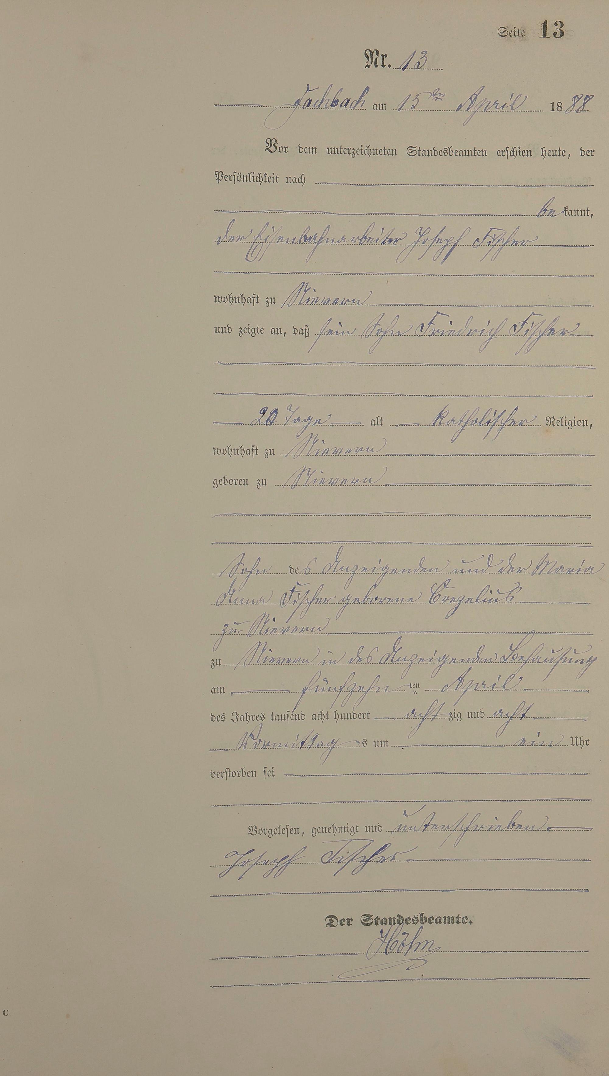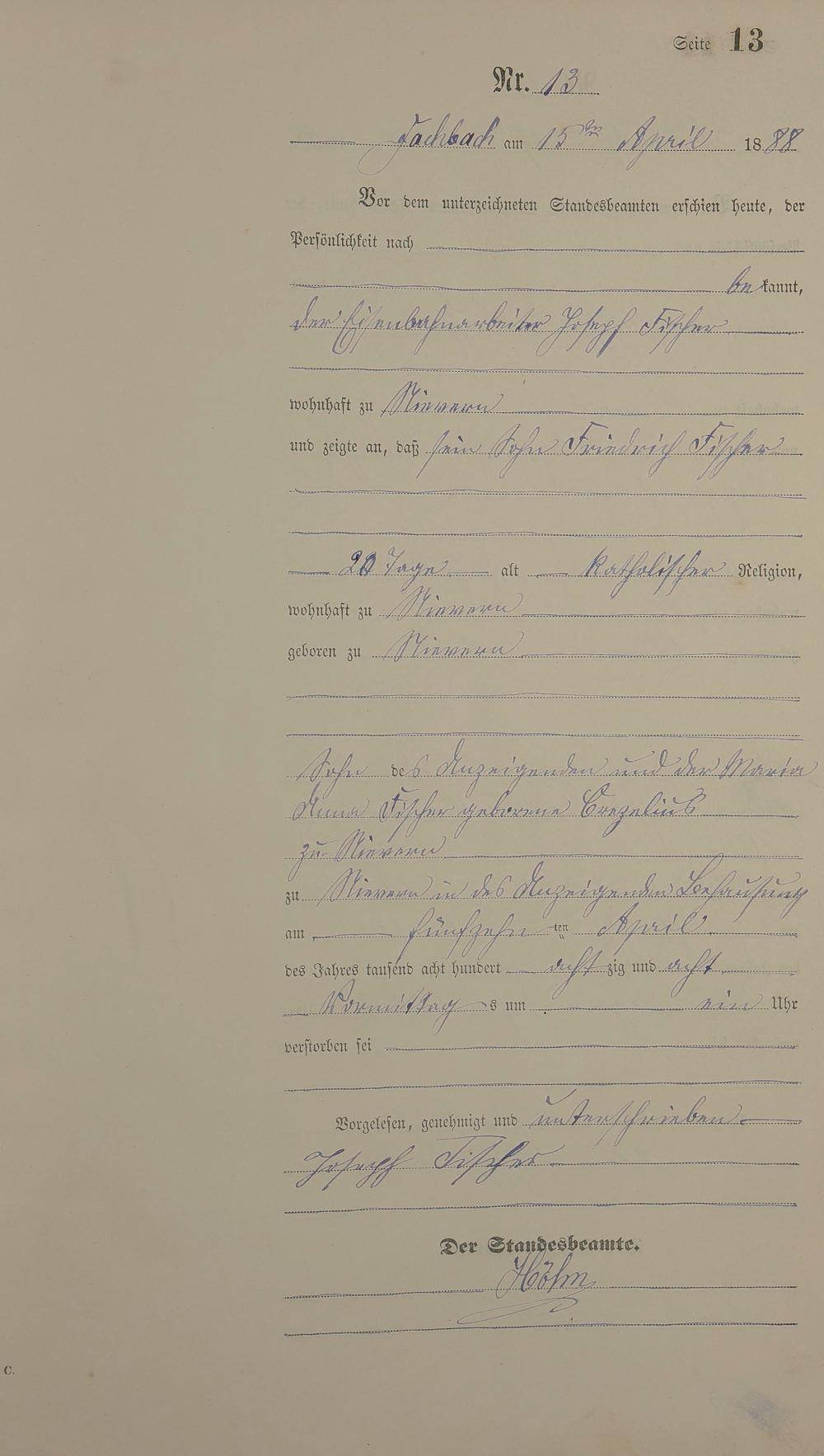 Sterberegister 1888