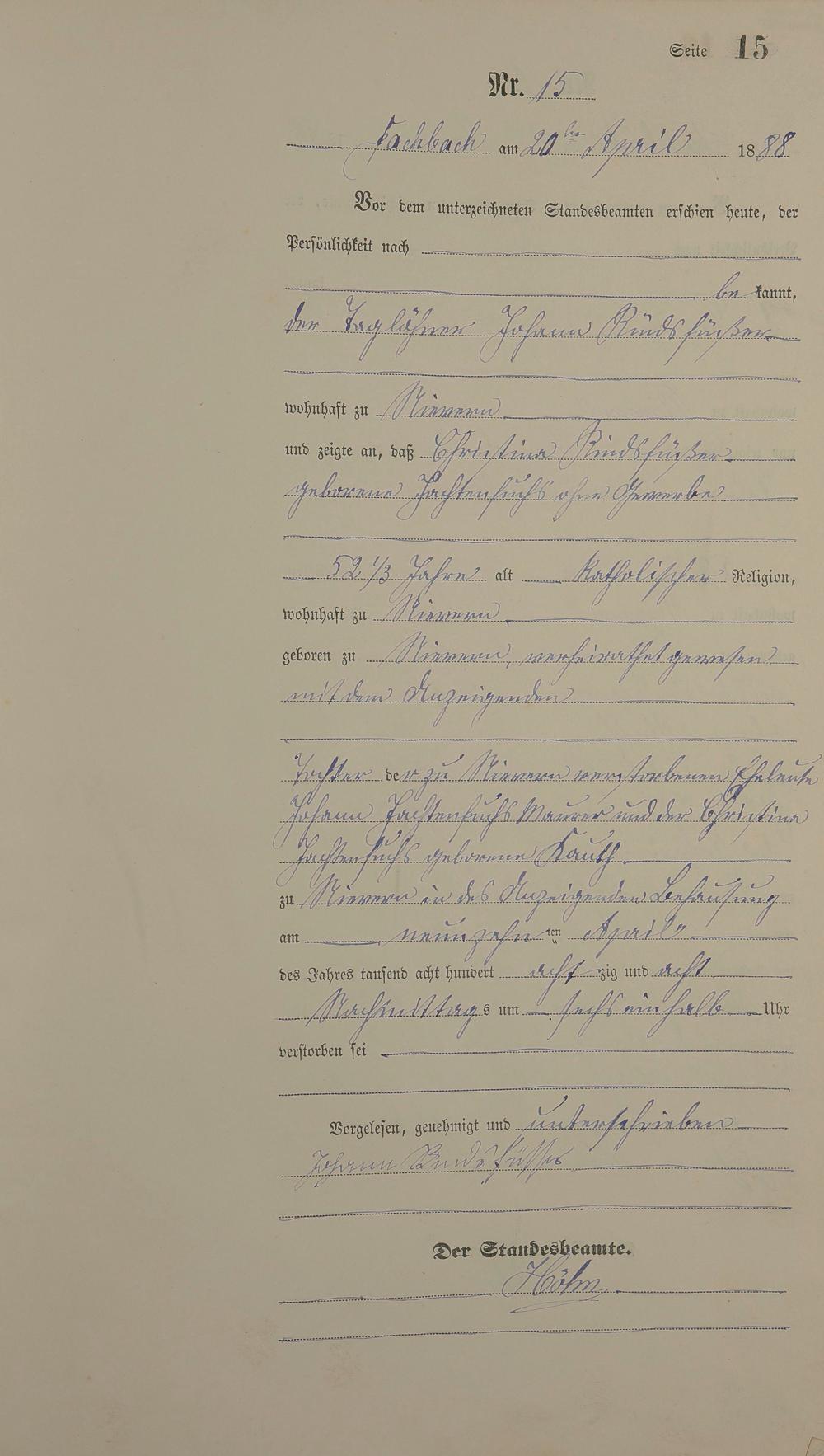 Sterberegister 1888