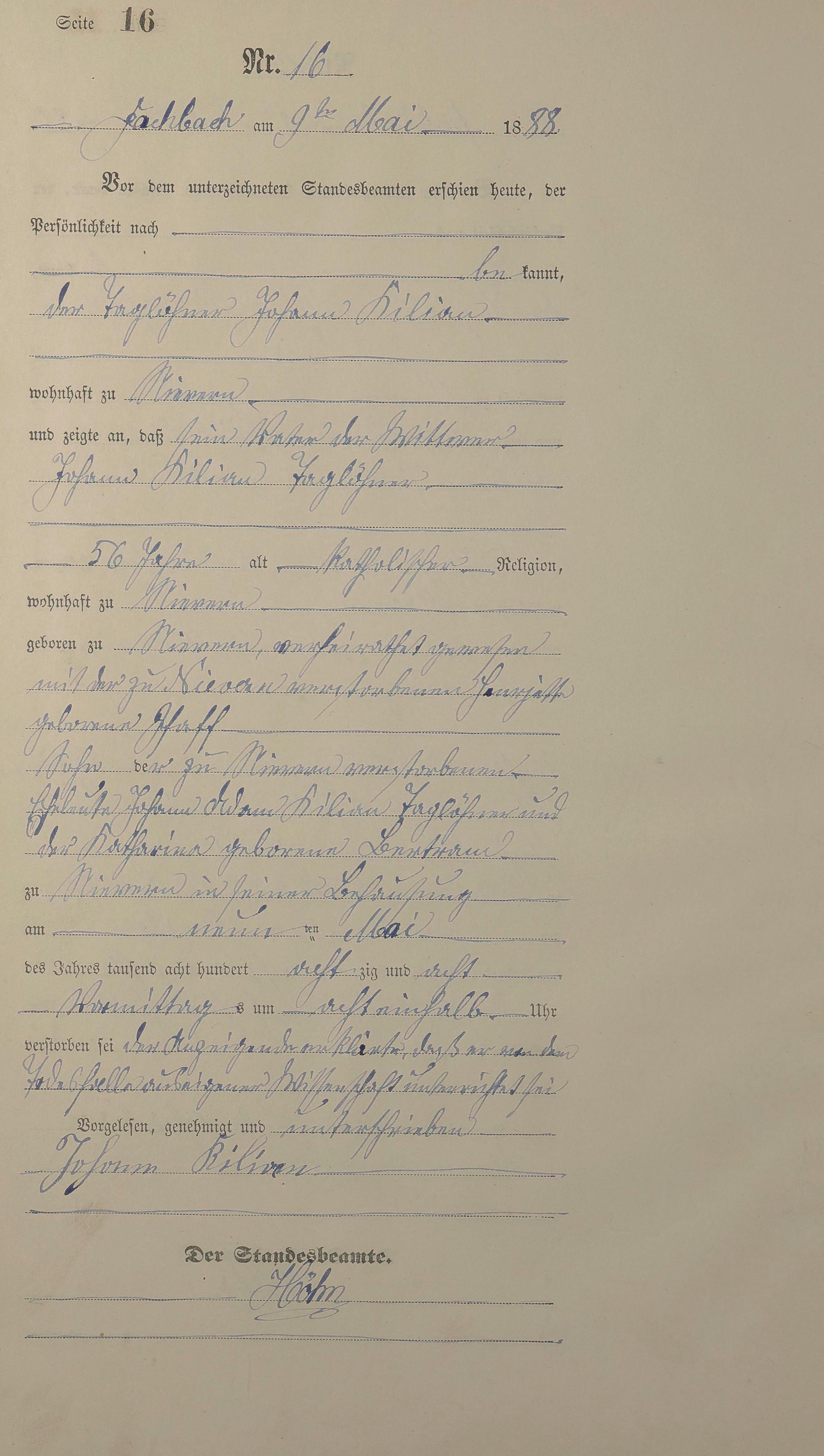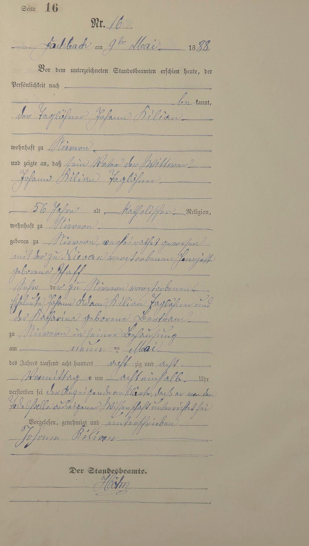 Sterberegister 1888