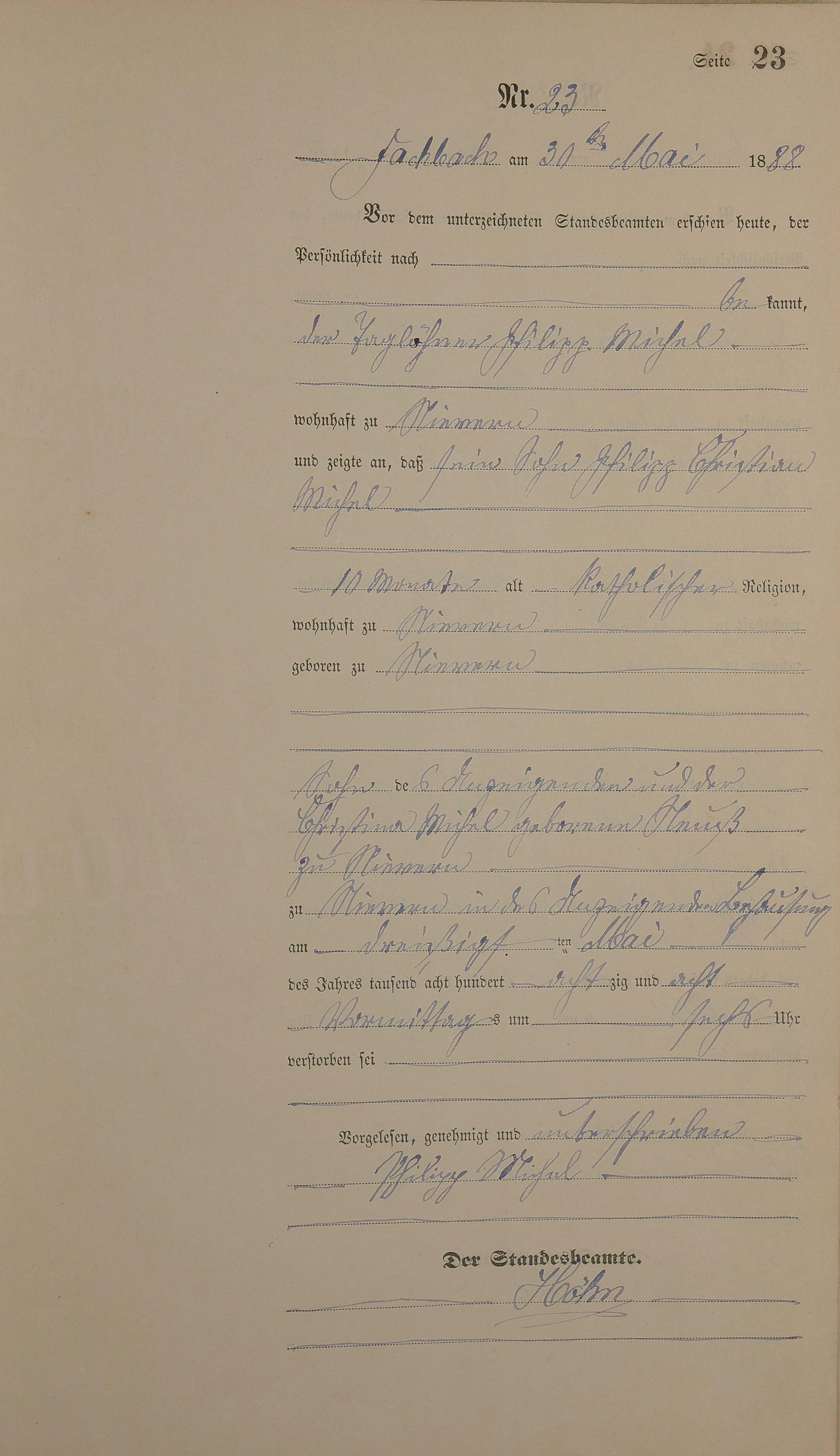 Sterberegister 1888