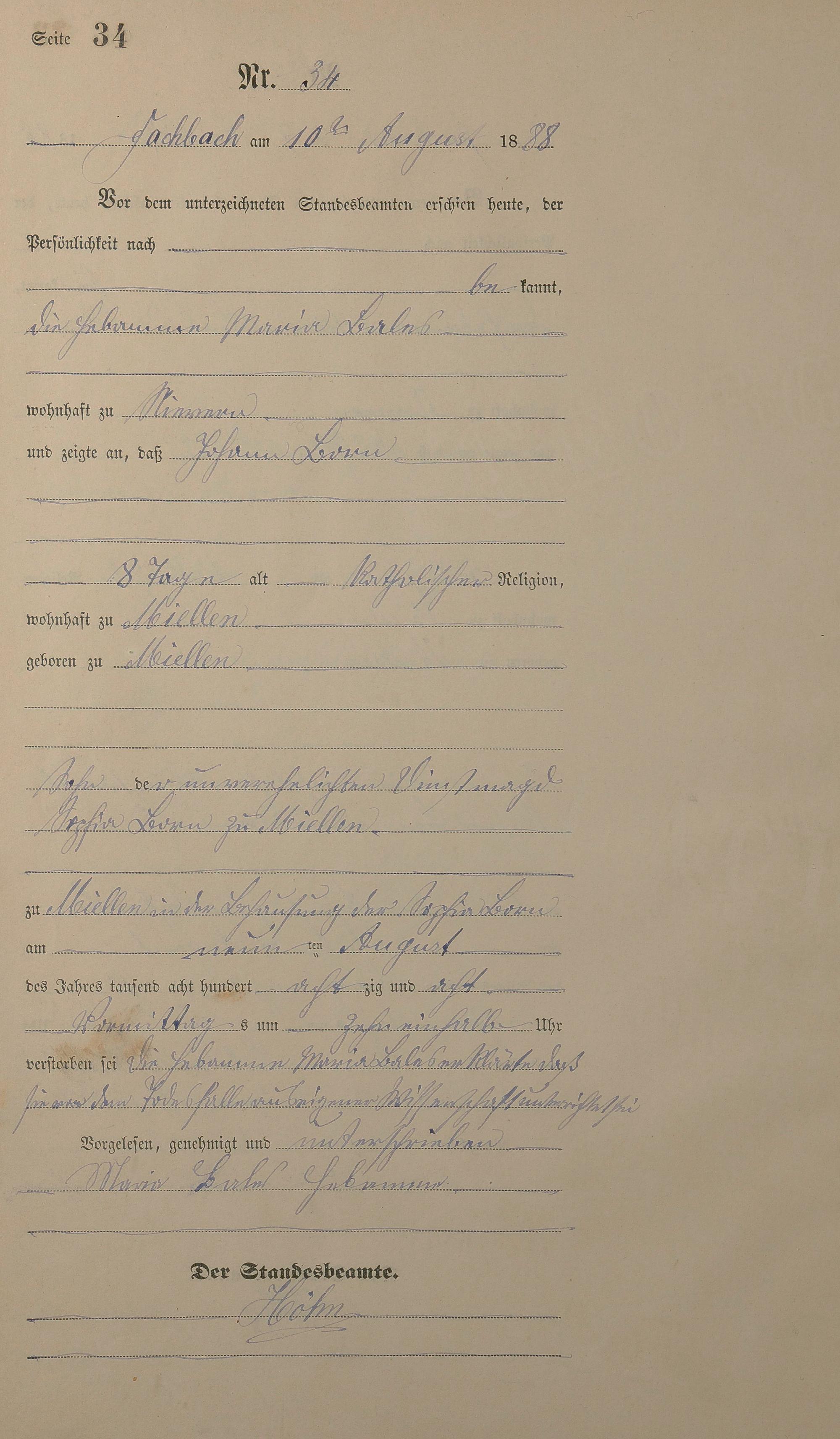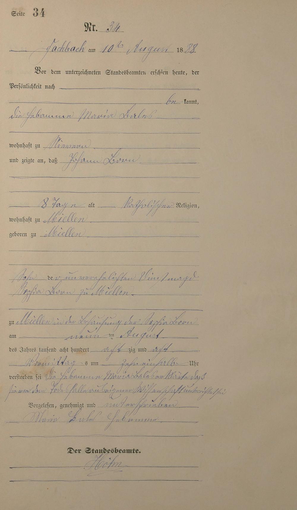 Sterberegister 1888