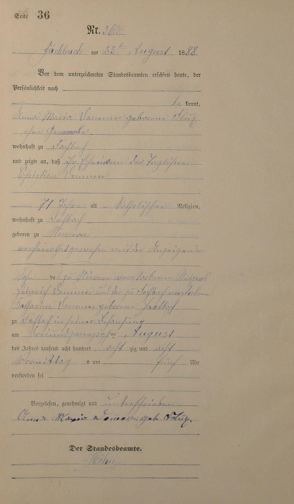 Sterberegister 1888