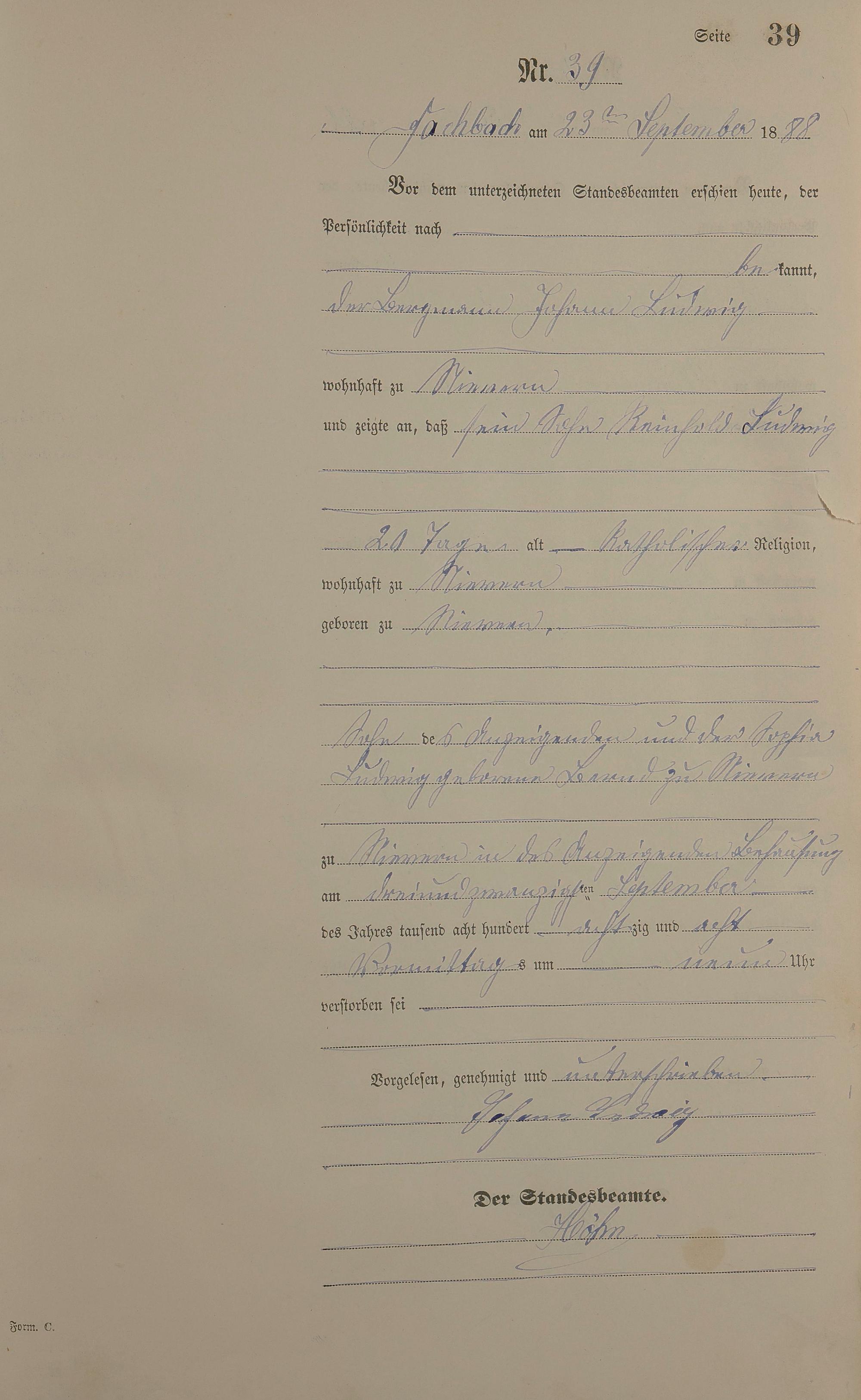Sterberegister 1888