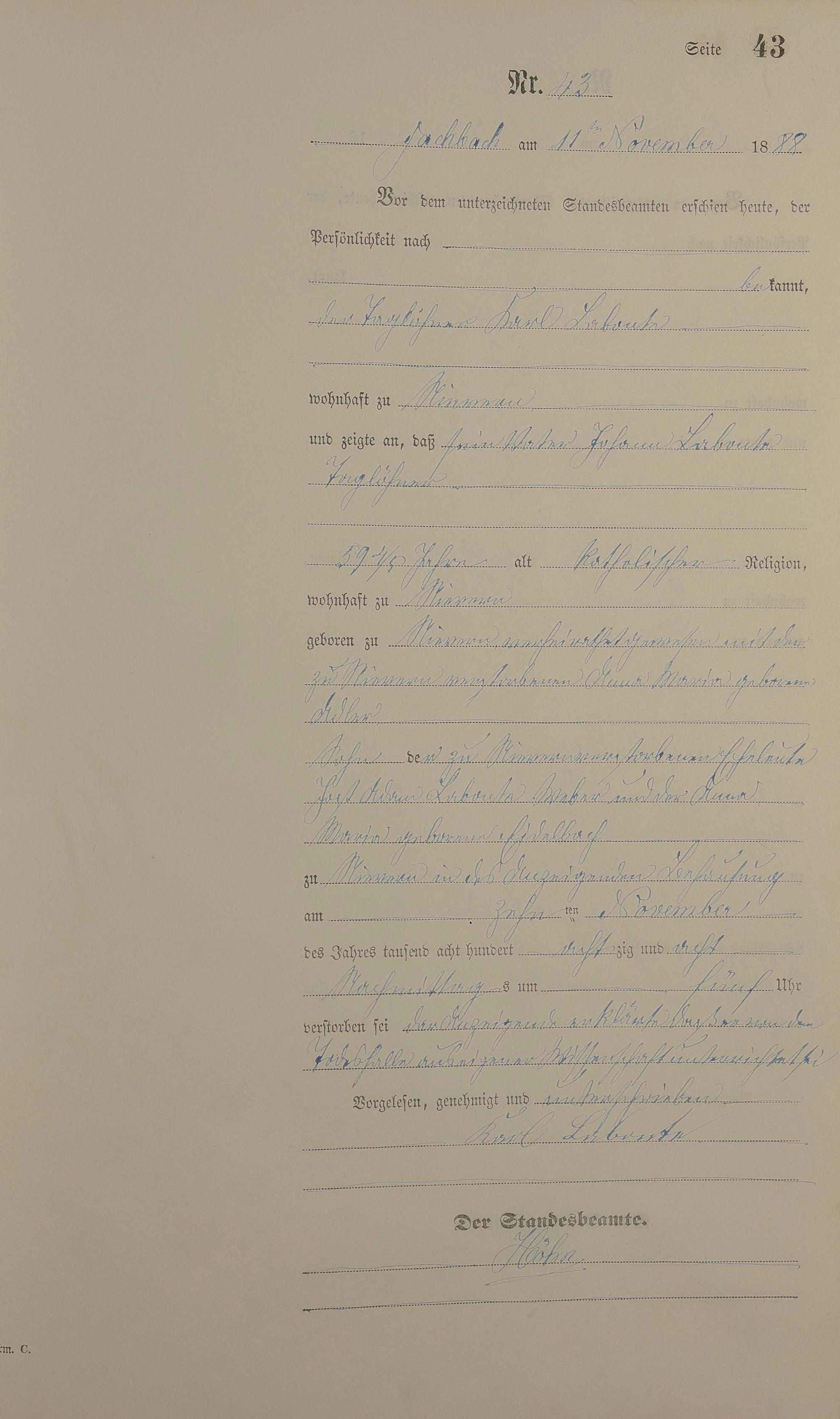Sterberegister 1888