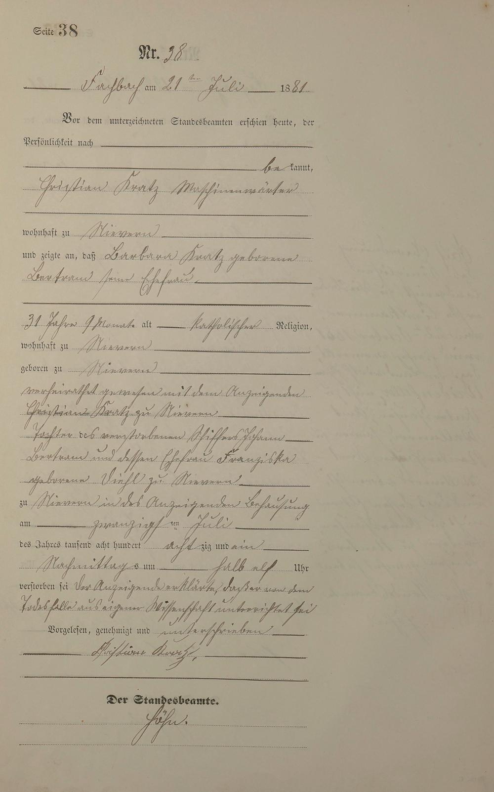Sterberegister 1881