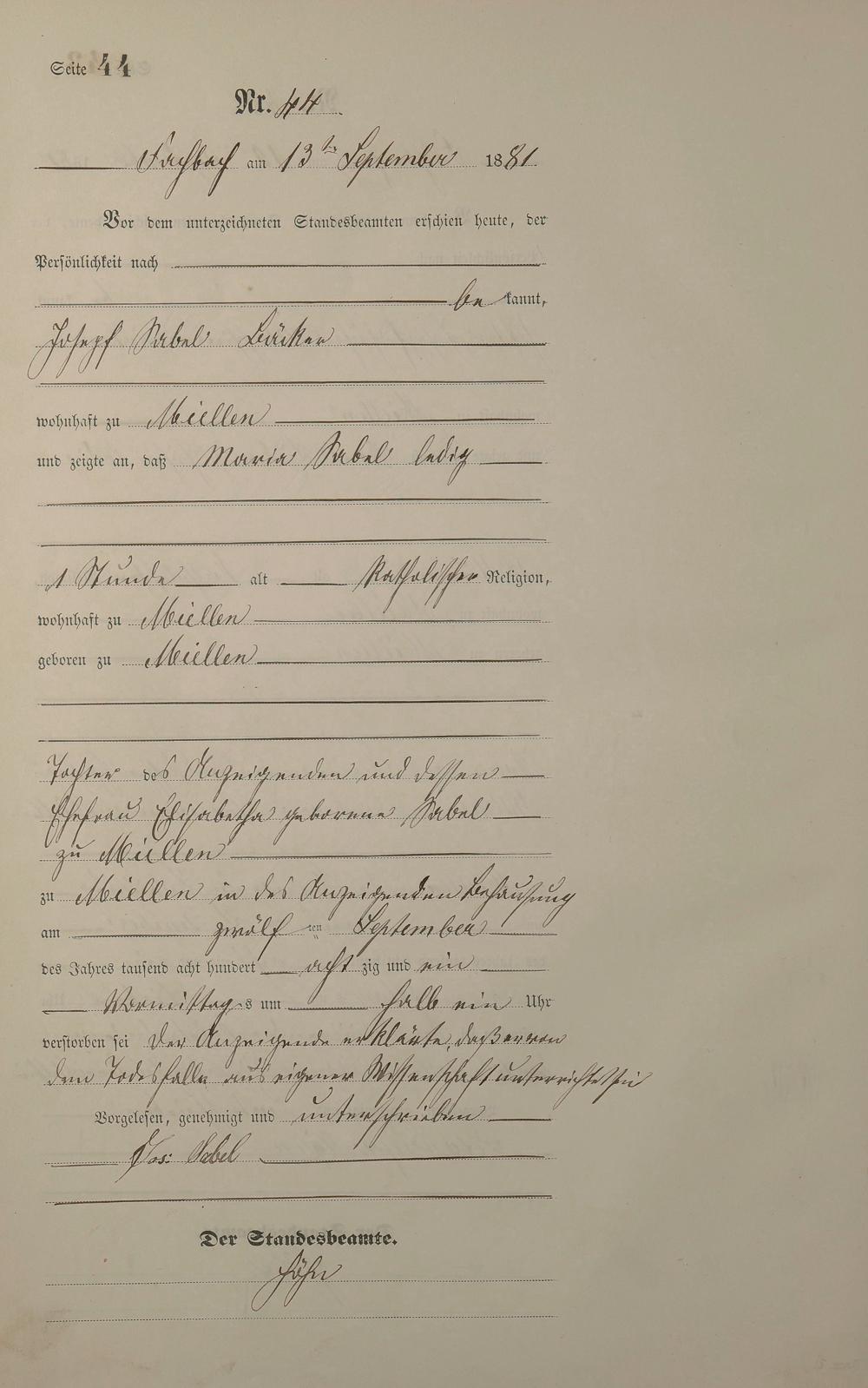 Sterberegister 1881
