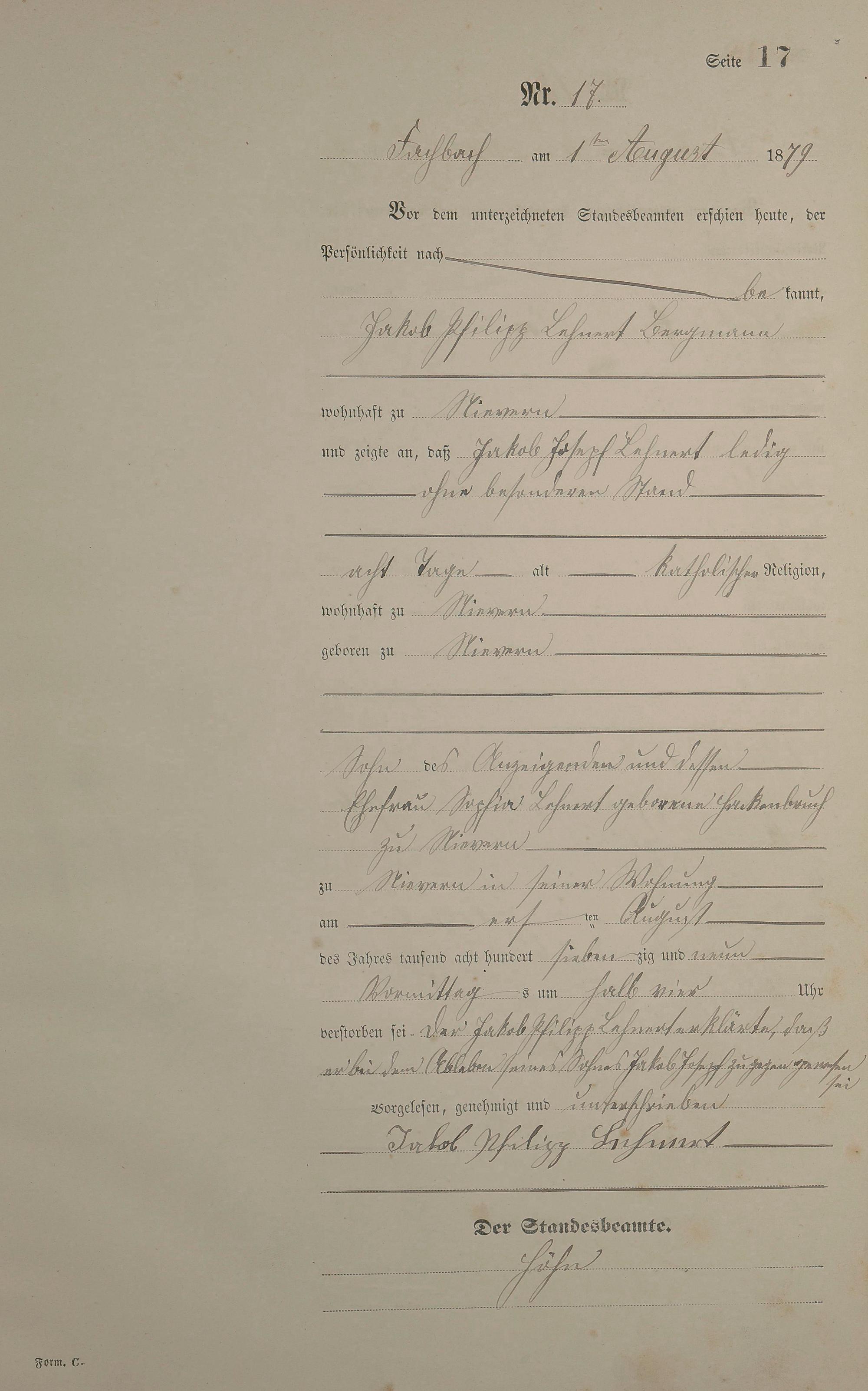 Sterberegister 1879