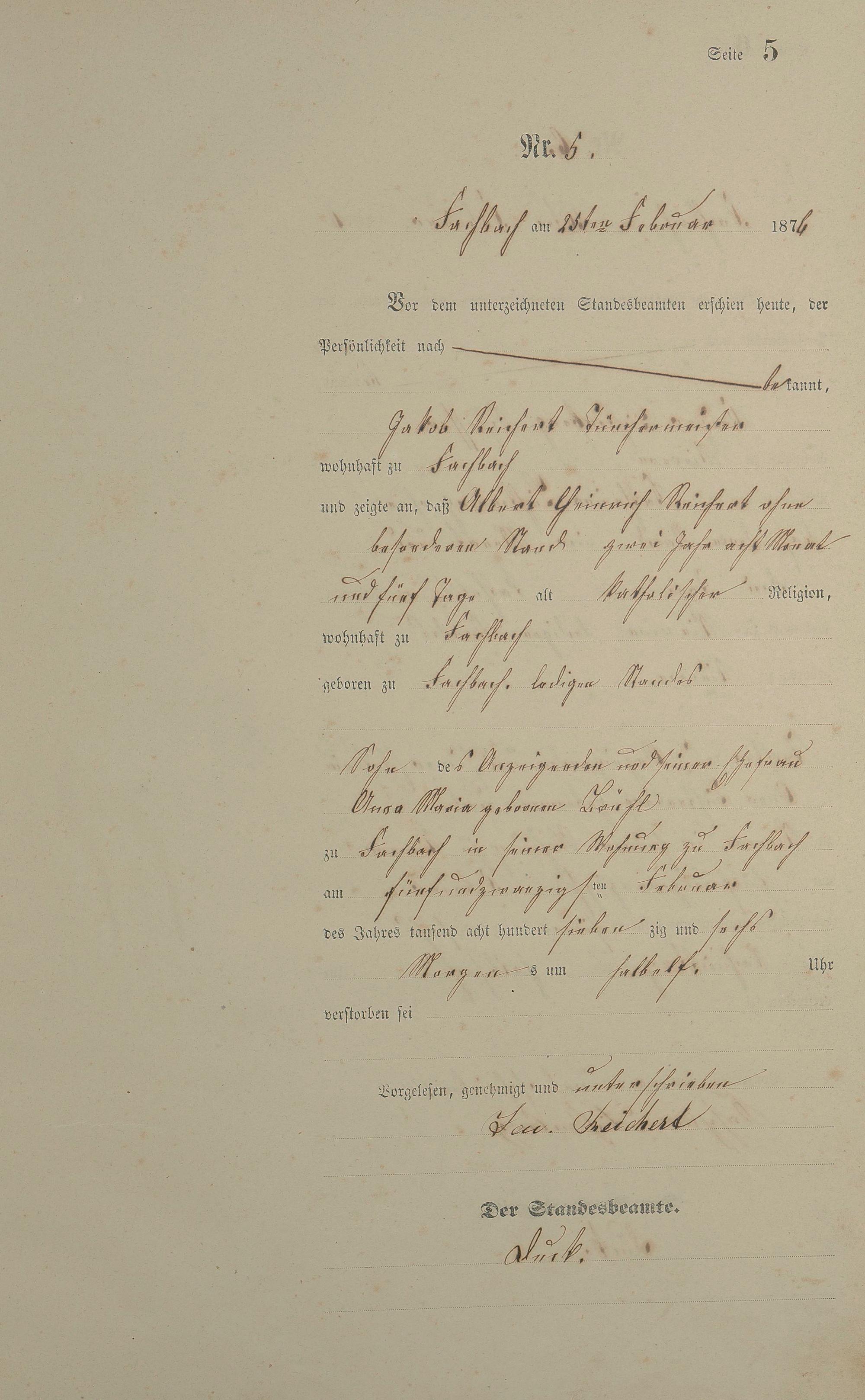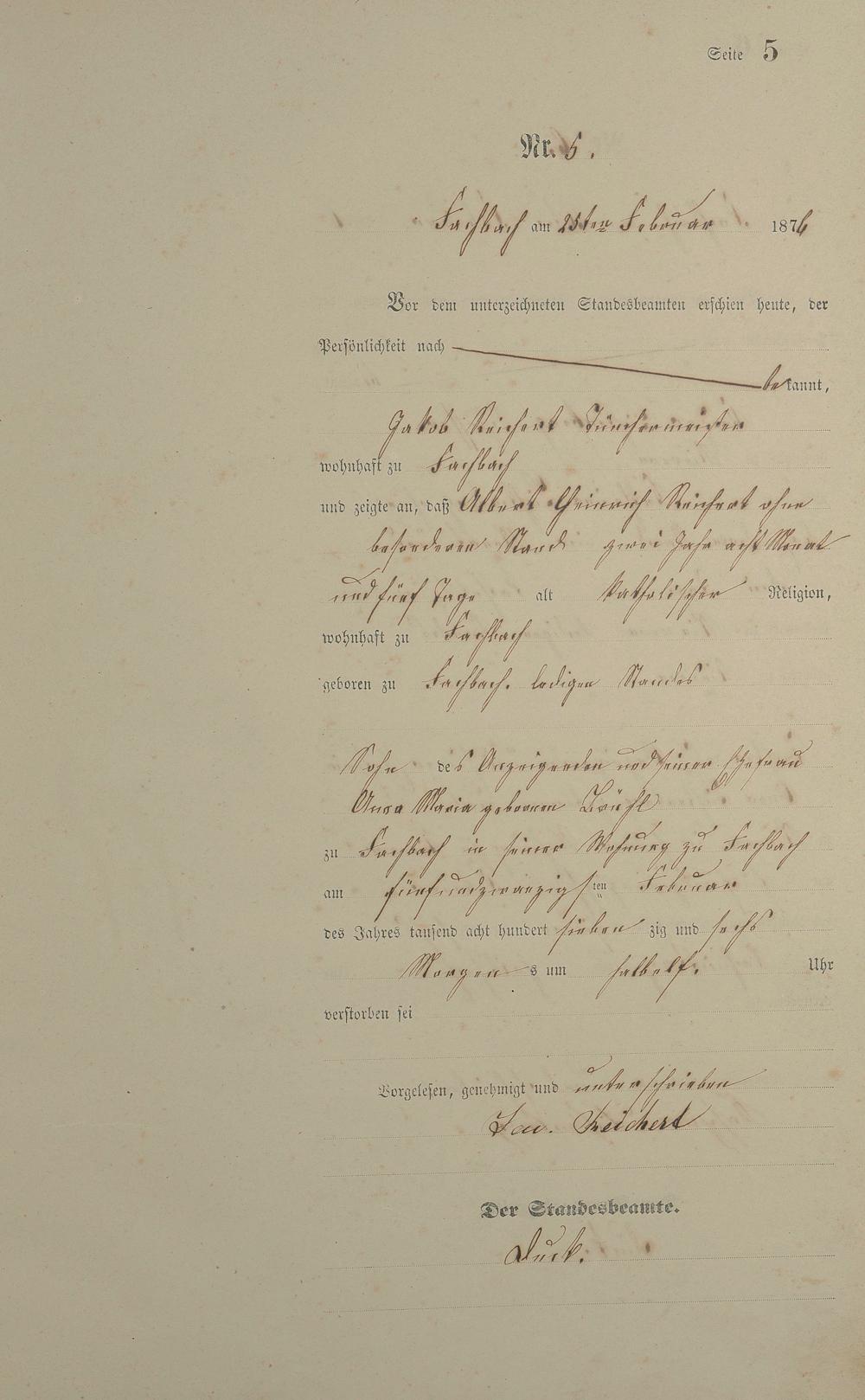 Sterberegister 1876