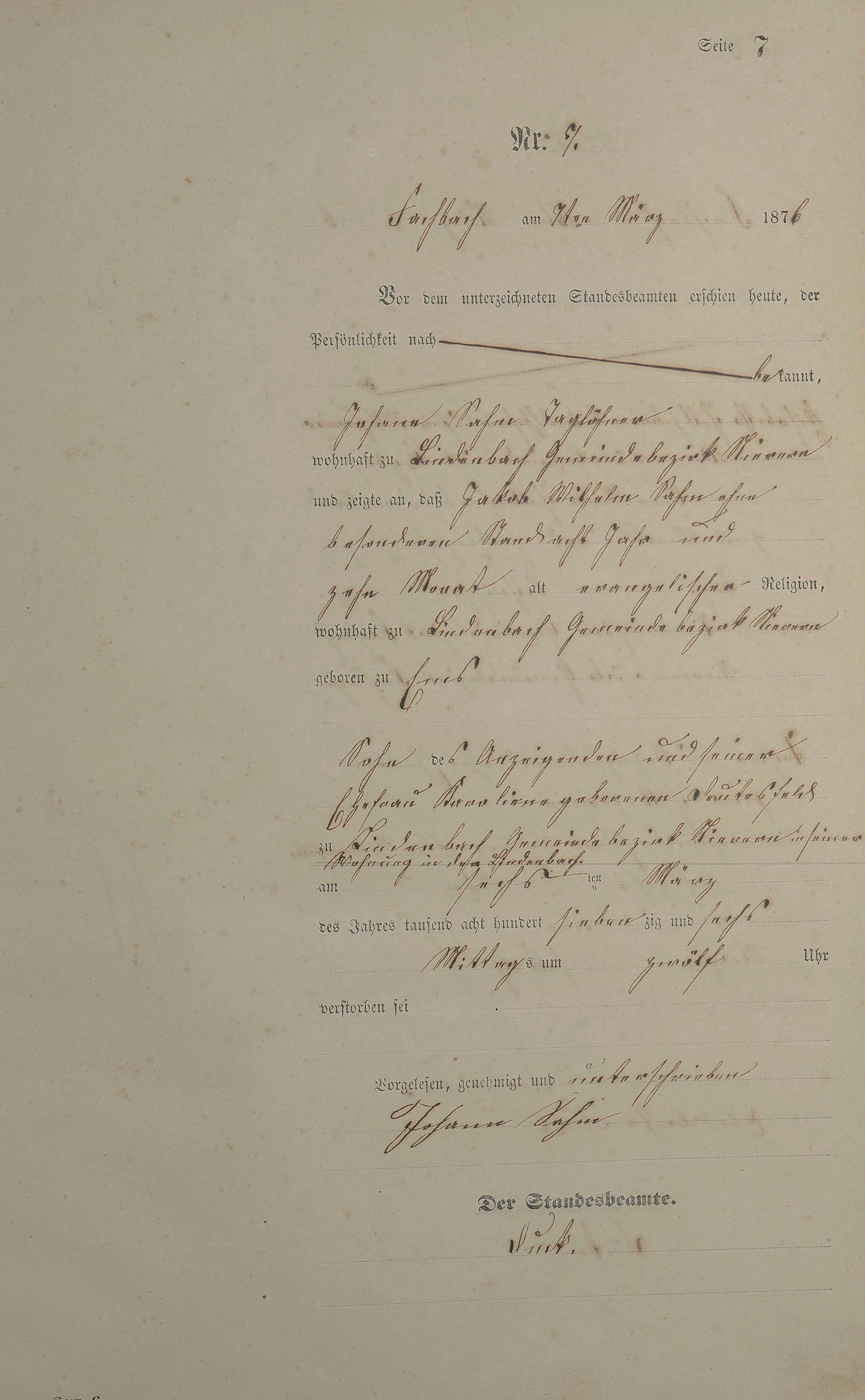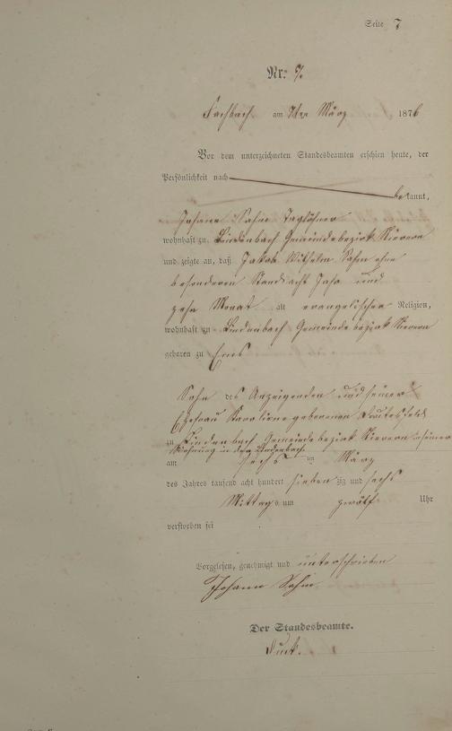 Sterberegister 1876