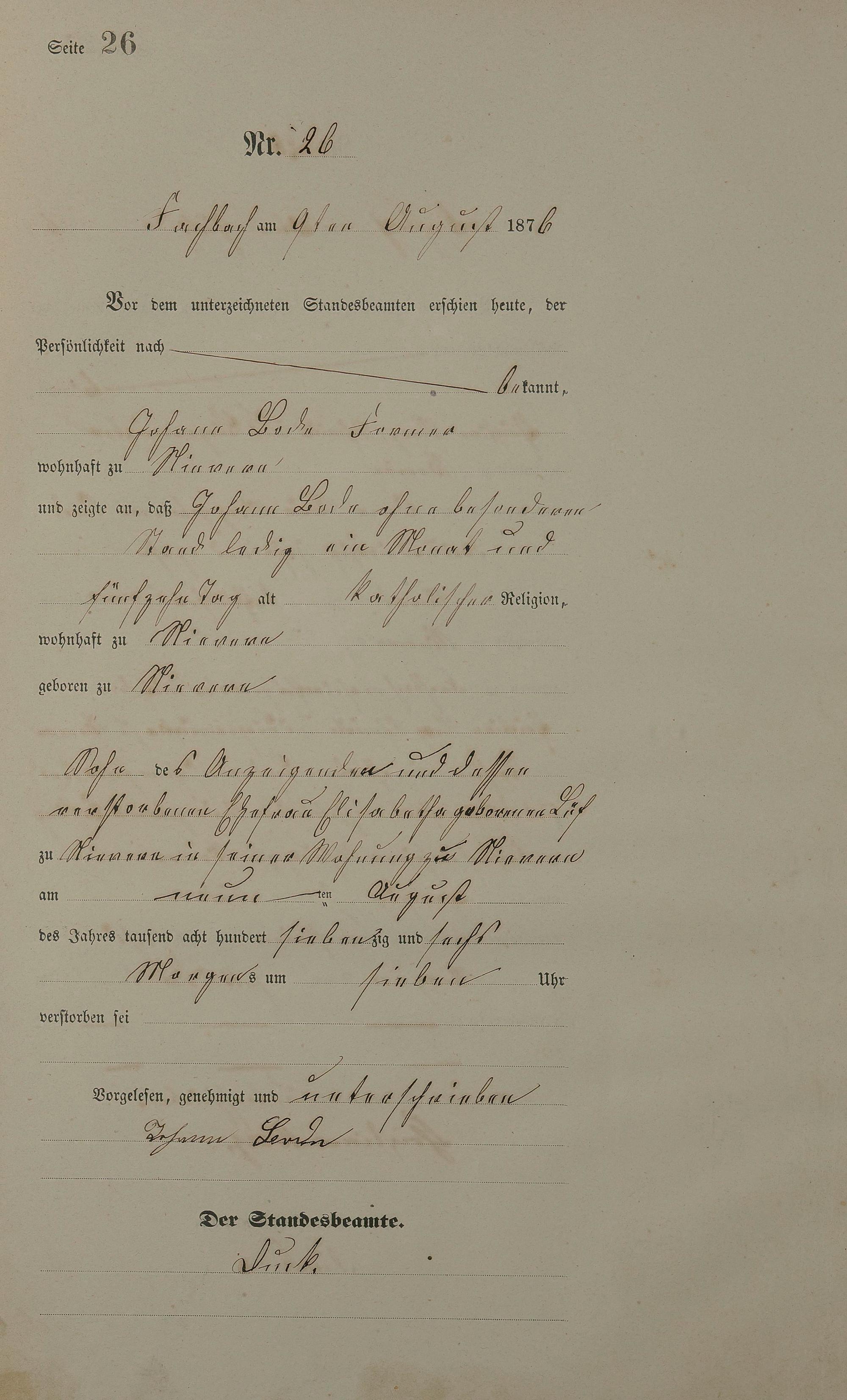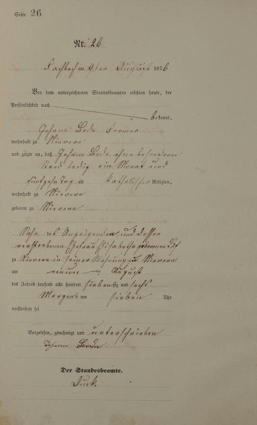 Sterberegister 1876
