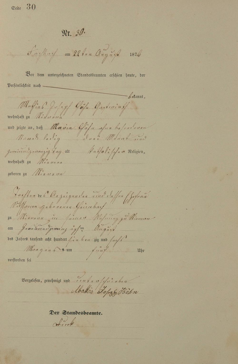 Sterberegister 1876