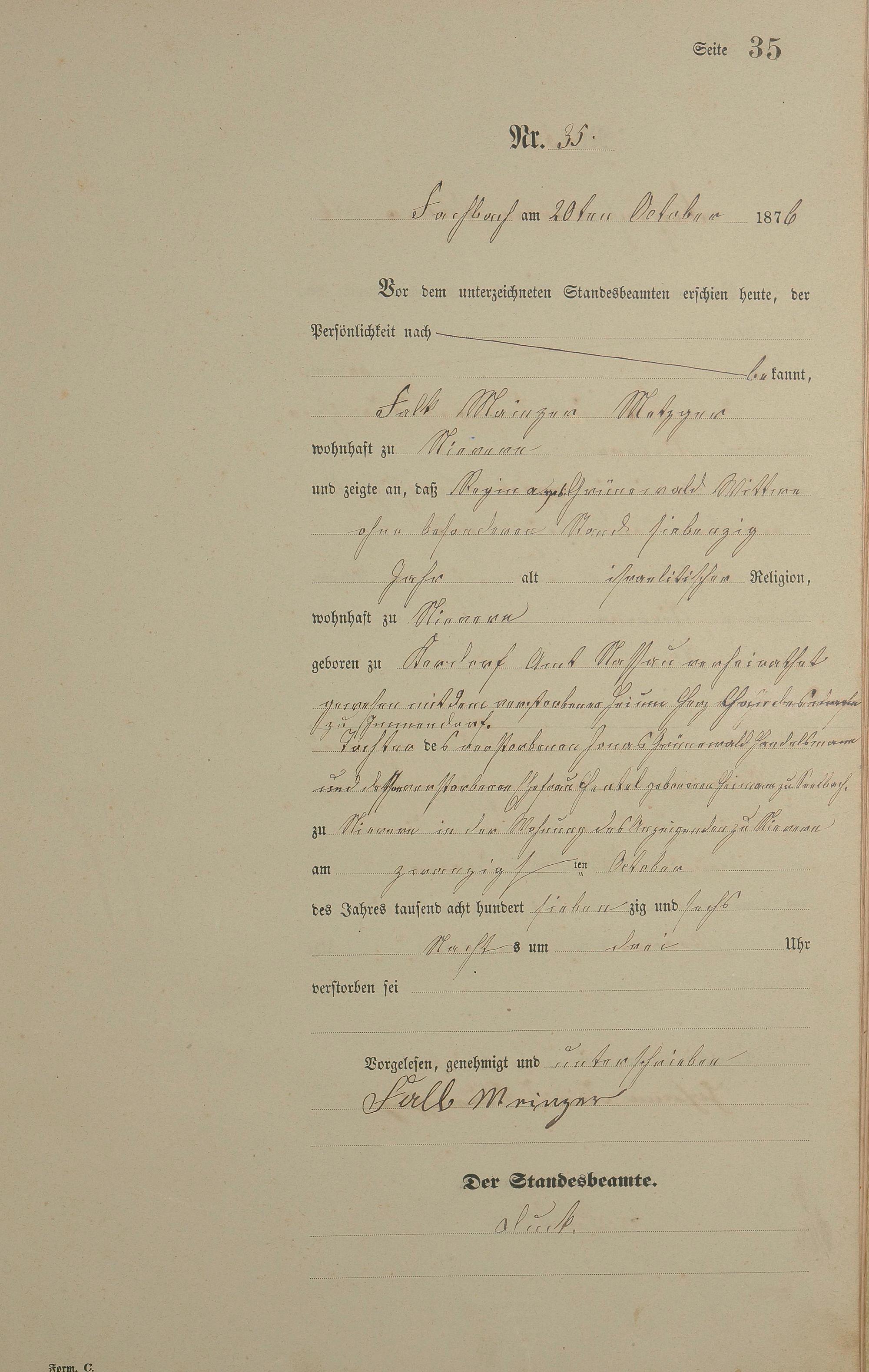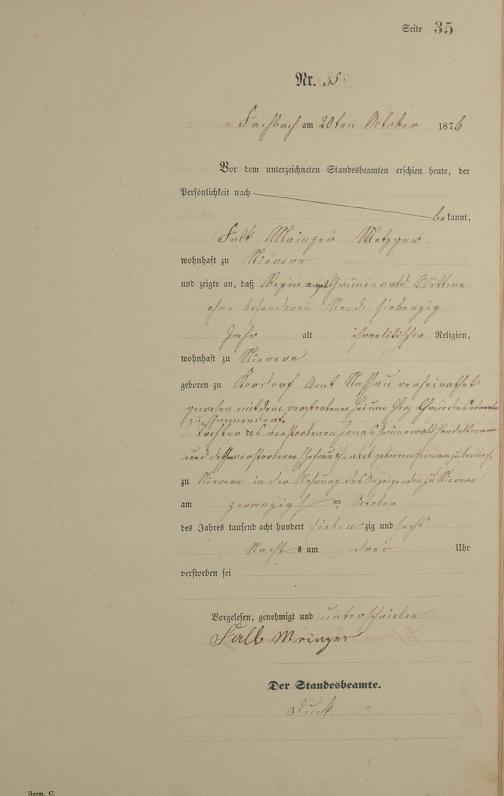 Sterberegister 1876