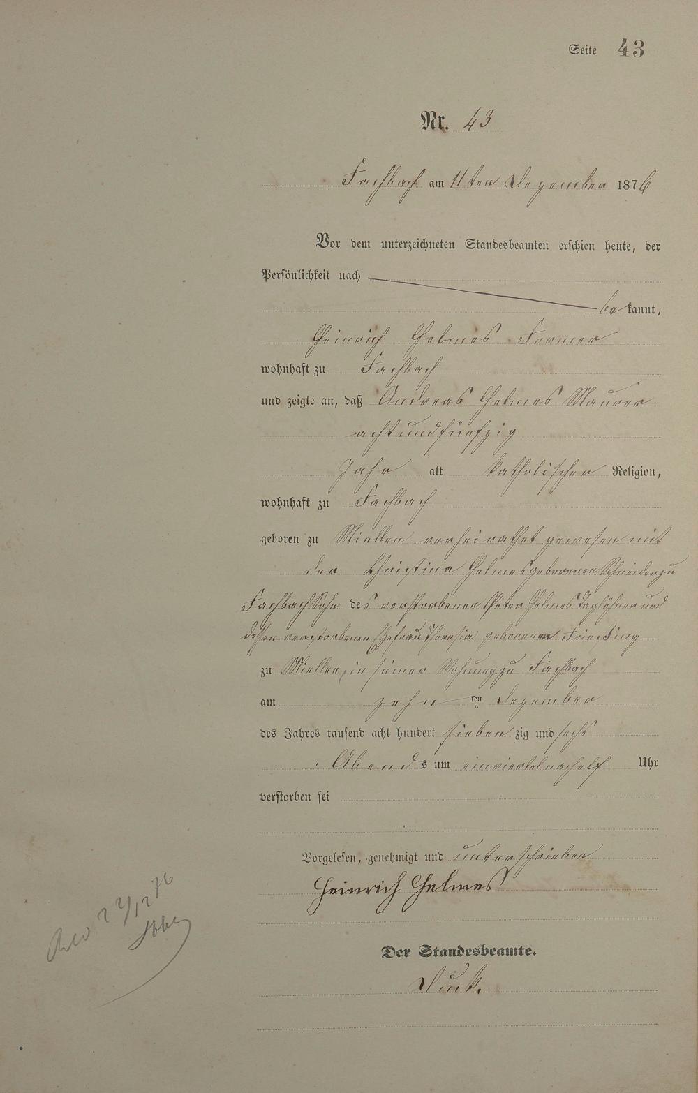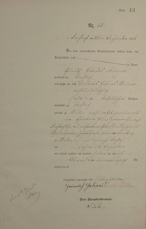 Sterberegister 1876