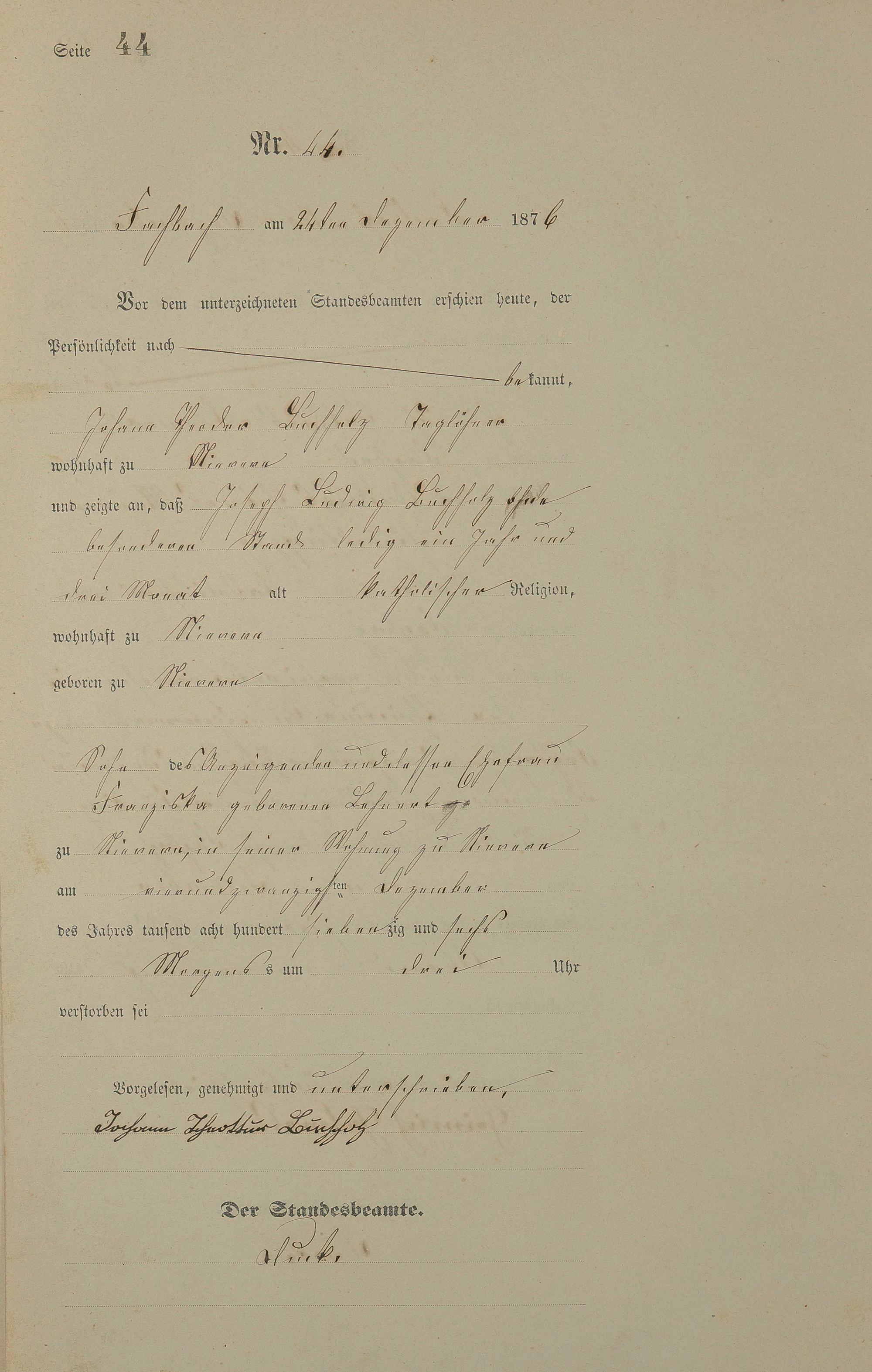 Sterberegister 1876